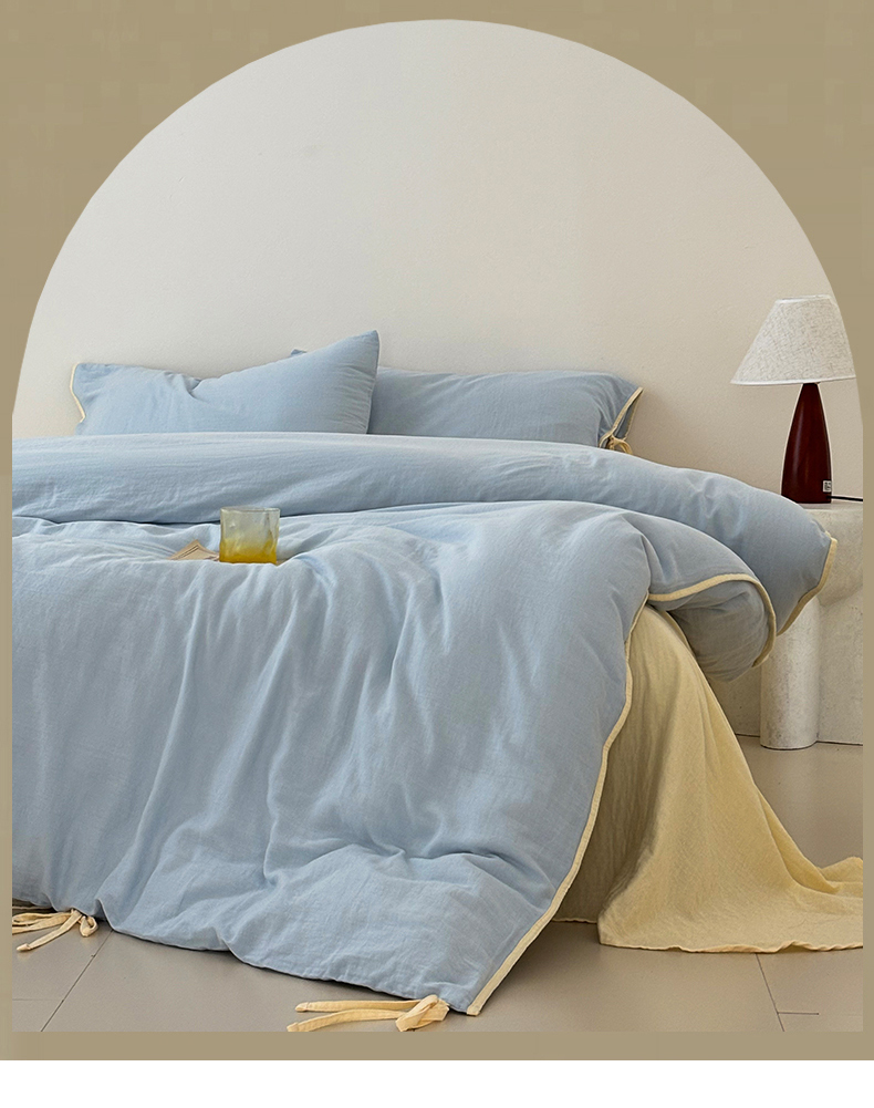 (总)FORTWO家纺原创设计(FOR TWO家纺) 2025新款双层纱撞色包边蝴蝶结款四件套-海盐