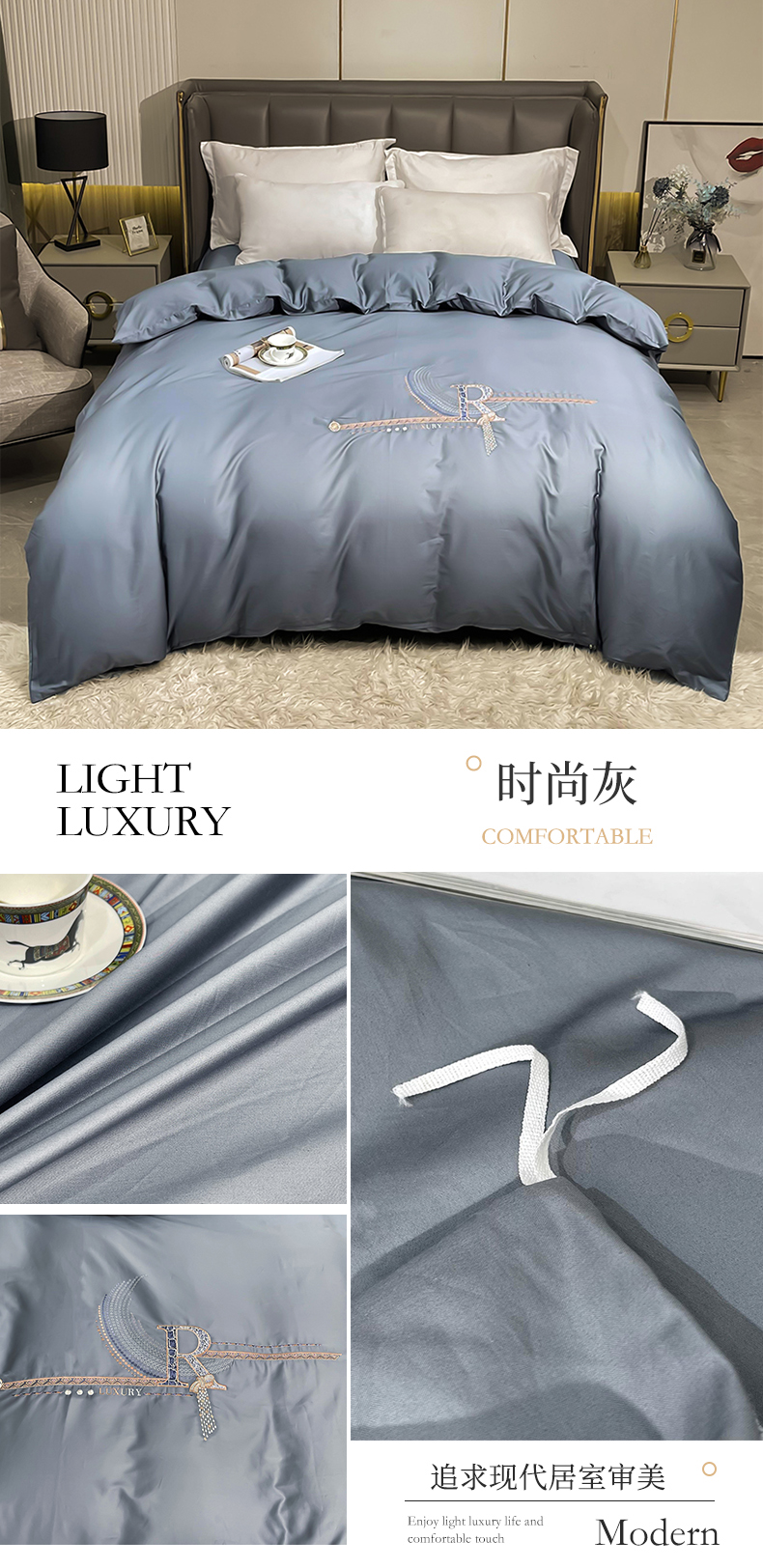 商品名称:艾迪尚家纺 2025新款120支刺绣长绒棉四六件套(新拍)-单被套 时尚-灰