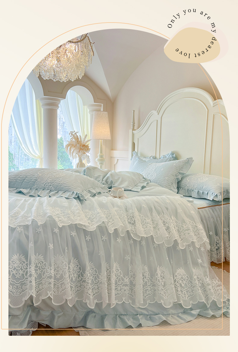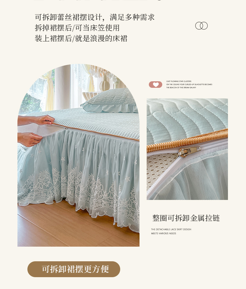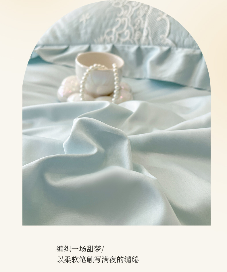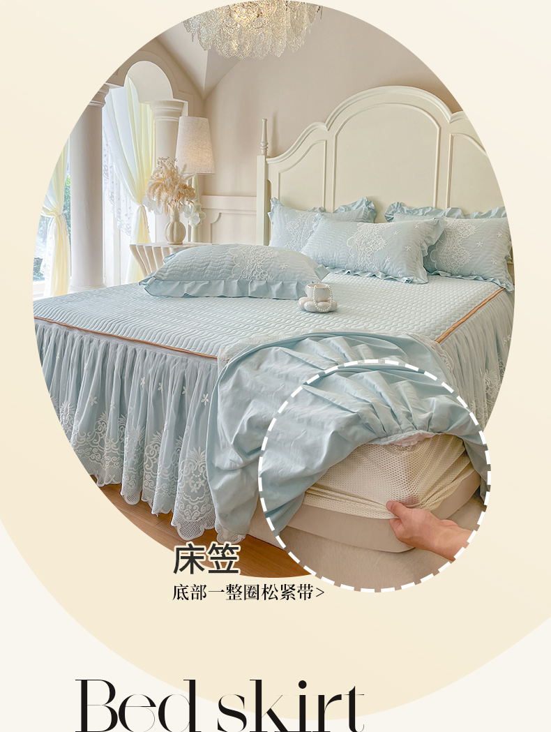 当前位置: 91家纺网 > 商品网购 > 床品套件 > 四件套 > 长绒棉四件套 > 恋尚 2025新款60S贡缎长绒棉全棉纯棉拉链可拆卸床笠款床裙四件套-曼莉系列 曼莉-清新蓝