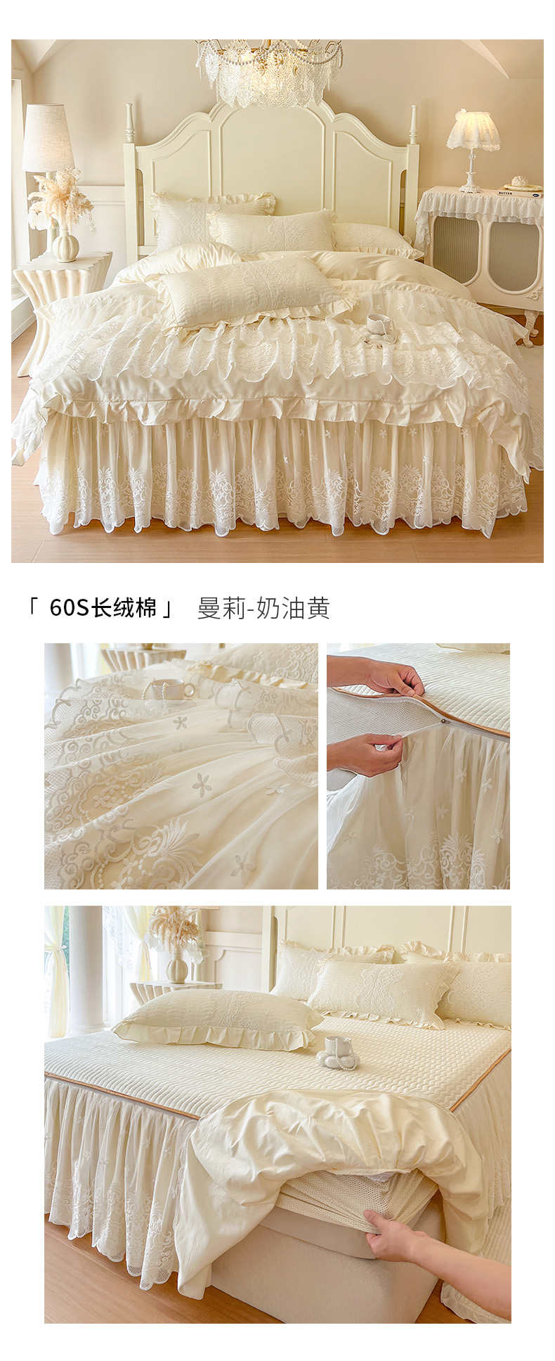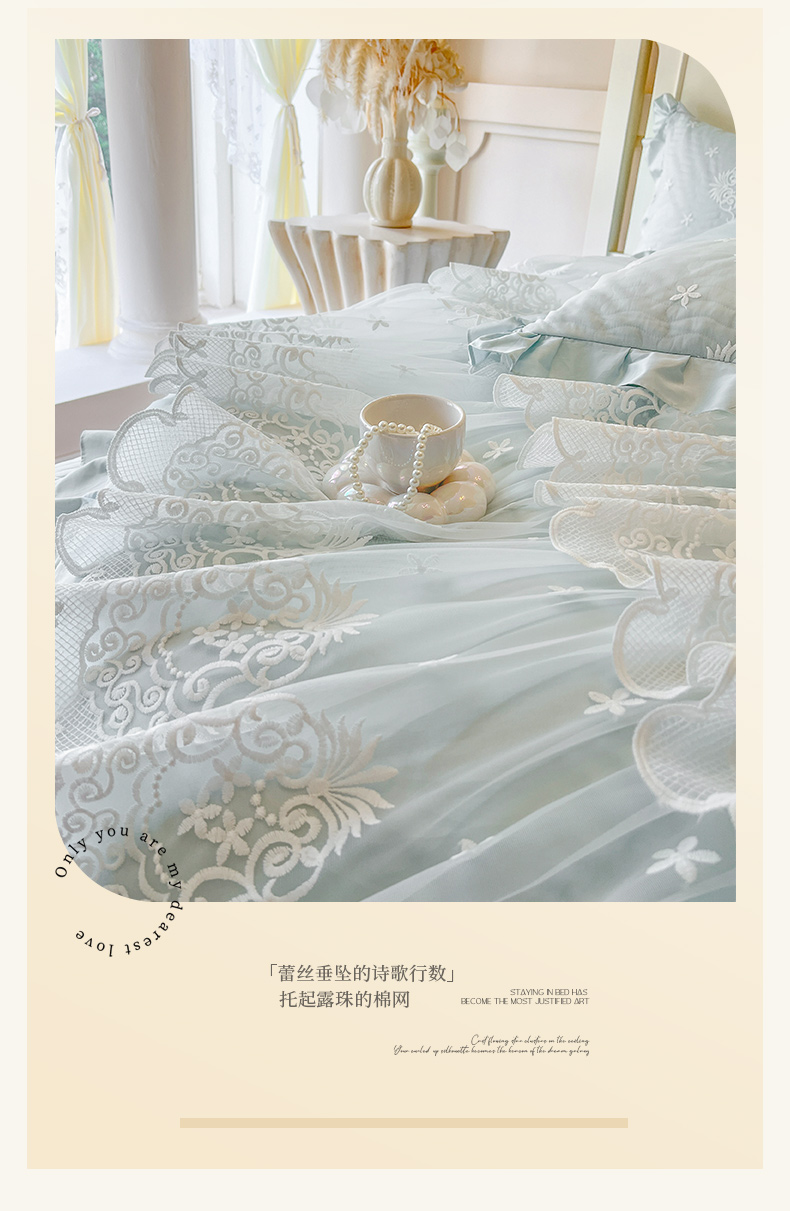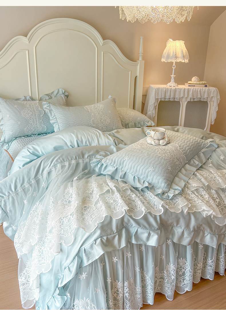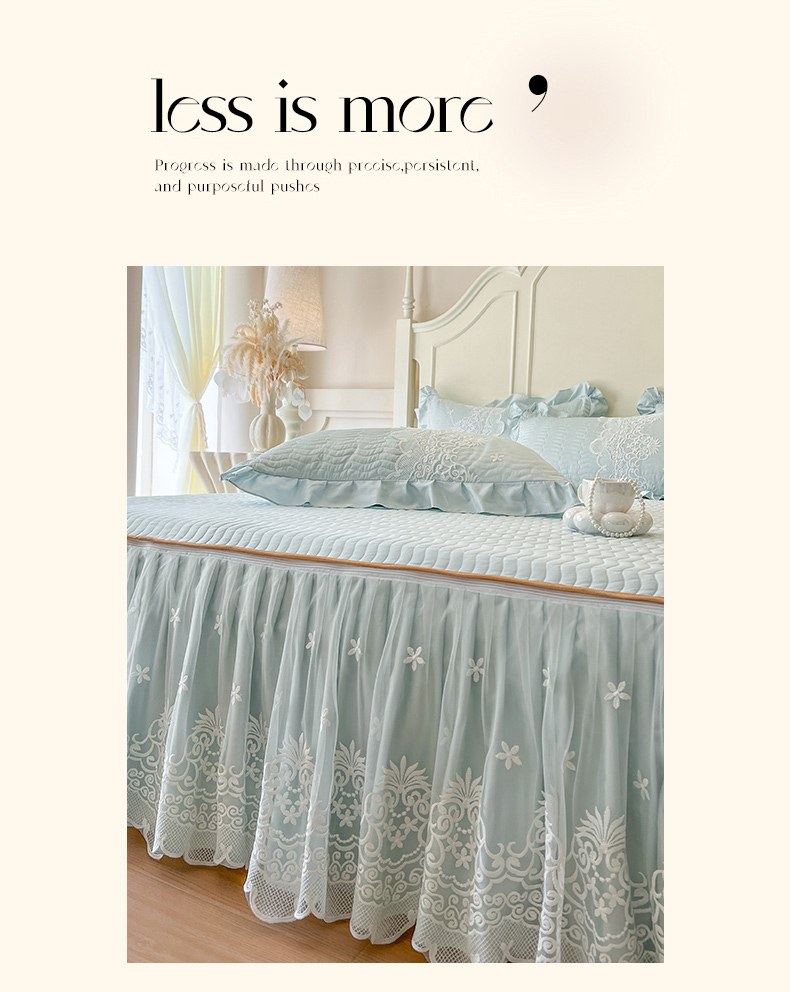 当前位置: 91家纺网 > 商品网购 > 床品套件 > 四件套 > 长绒棉四件套 > 恋尚 2025新款60S贡缎长绒棉全棉纯棉拉链可拆卸床笠款床裙四件套-曼莉系列 曼莉-清新蓝