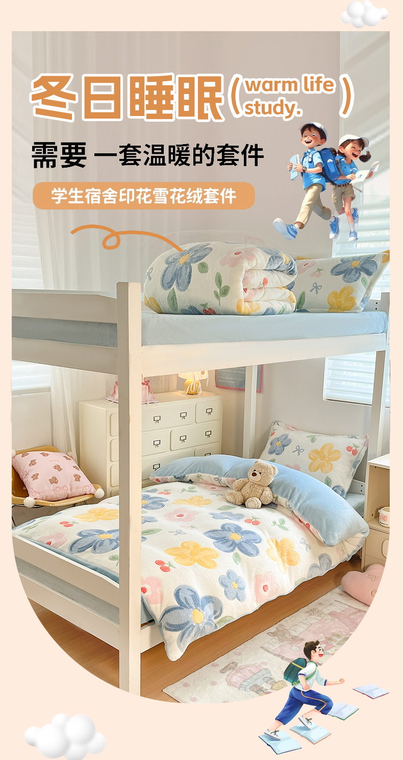 当前位置: 91家纺网 > 商品网购 > 床品套件 > 四件套 > 其它四件套 > 川悦生活 2025新款立体雪花绒印花四件套学生床系列二场景一 甜梦小猫