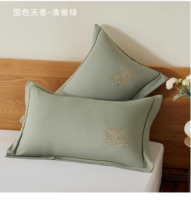 丰淘家纺 2025新款60水洗棉精美刺绣枕套-国色天香 国色天香-清雅绿