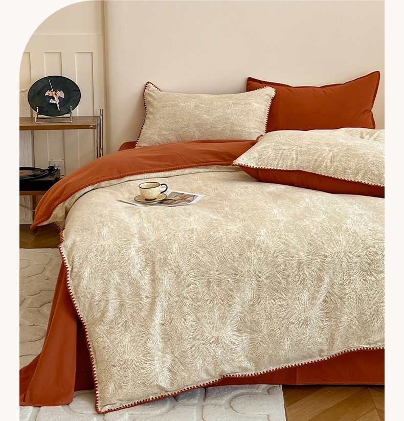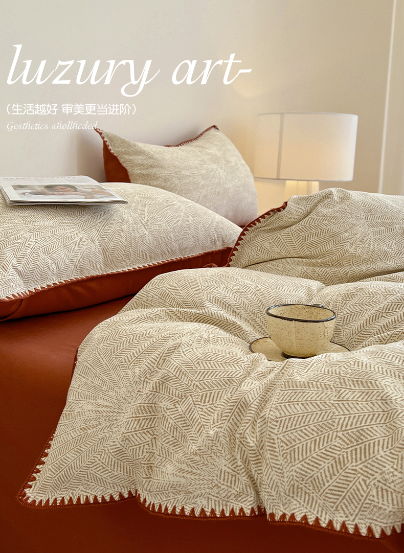 忆生活 2025秋冬全棉加厚磨毛贝壳边四件套南初-咖