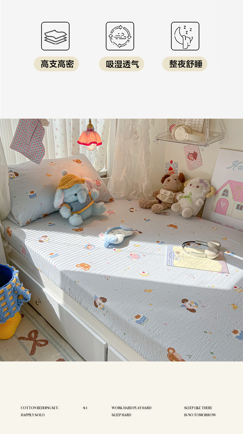 韩巢家纺 2025新款A类学生宿舍上下铺床笠单件床垫保护罩枕套三件套 生日宴会兰
