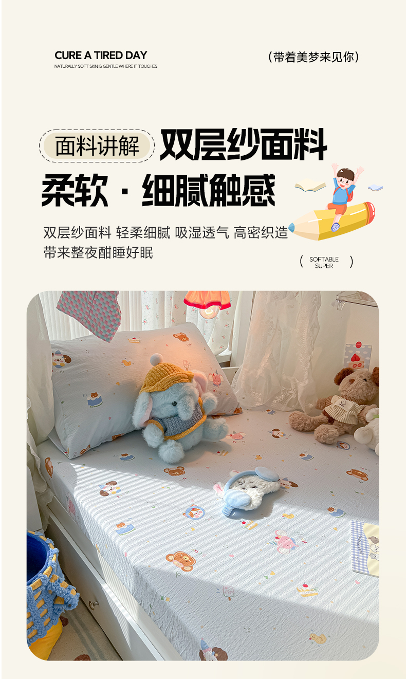 (总)韩巢家纺 2026新款花边款针织双层纱四件套,爱心,彩色蝴蝶结,春和豆沙,春和米,春意花开,叮当熊,花田薇,可爱多兰,可爱熊,敏敏灰,魔法森林,木昔,奶油波点米,奶油狗,巧克力,塞林娜绿,塞林娜米黄,问秋黄,问秋棕,熊先生,悠然紫,云山沐晚