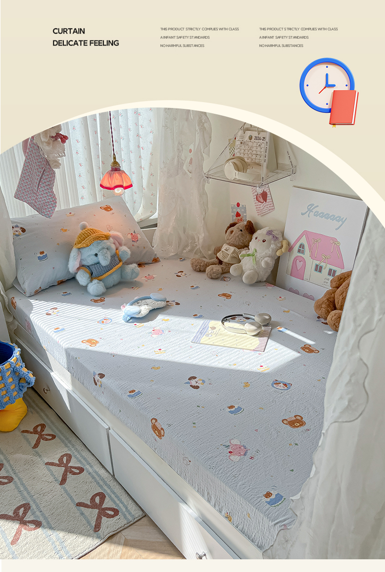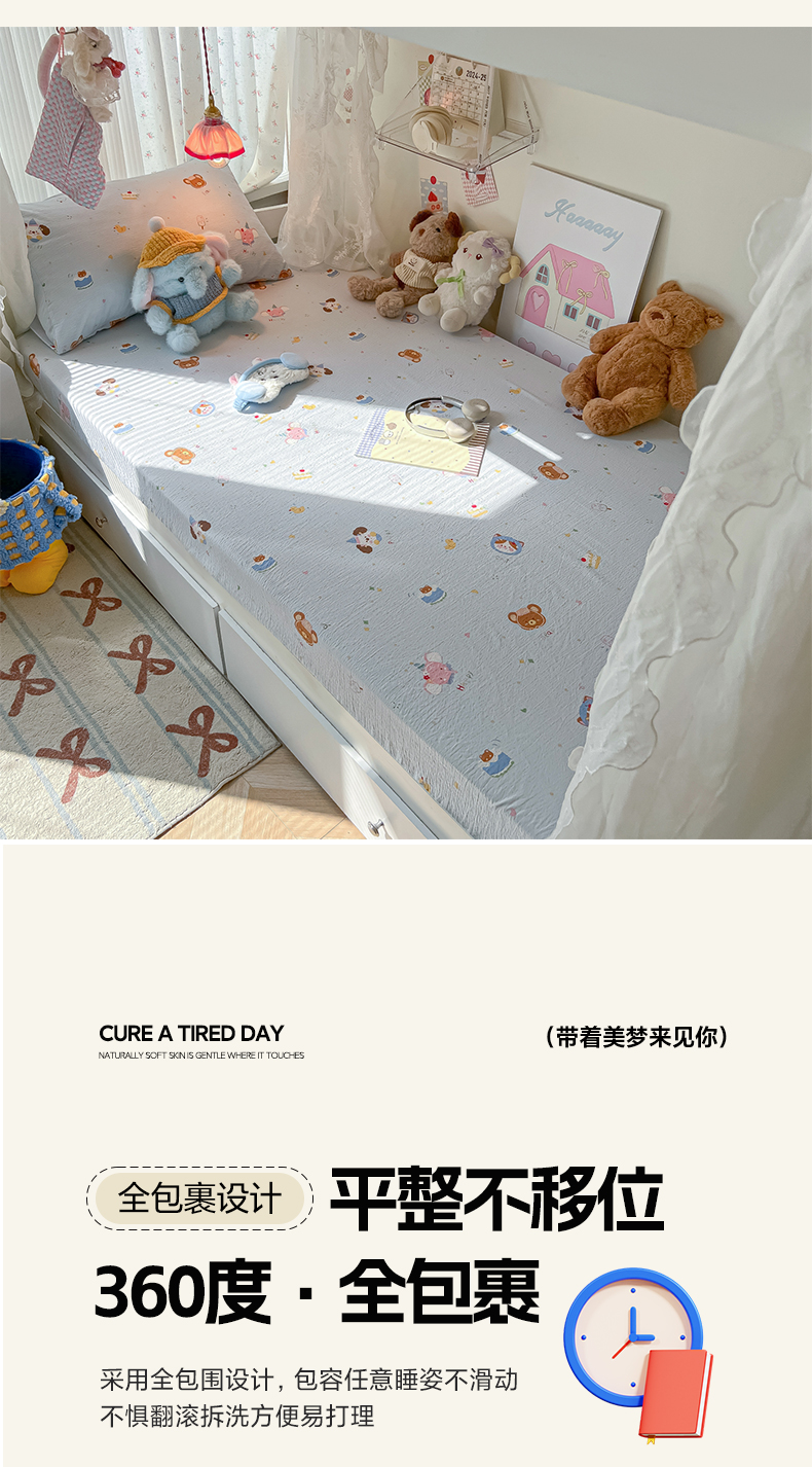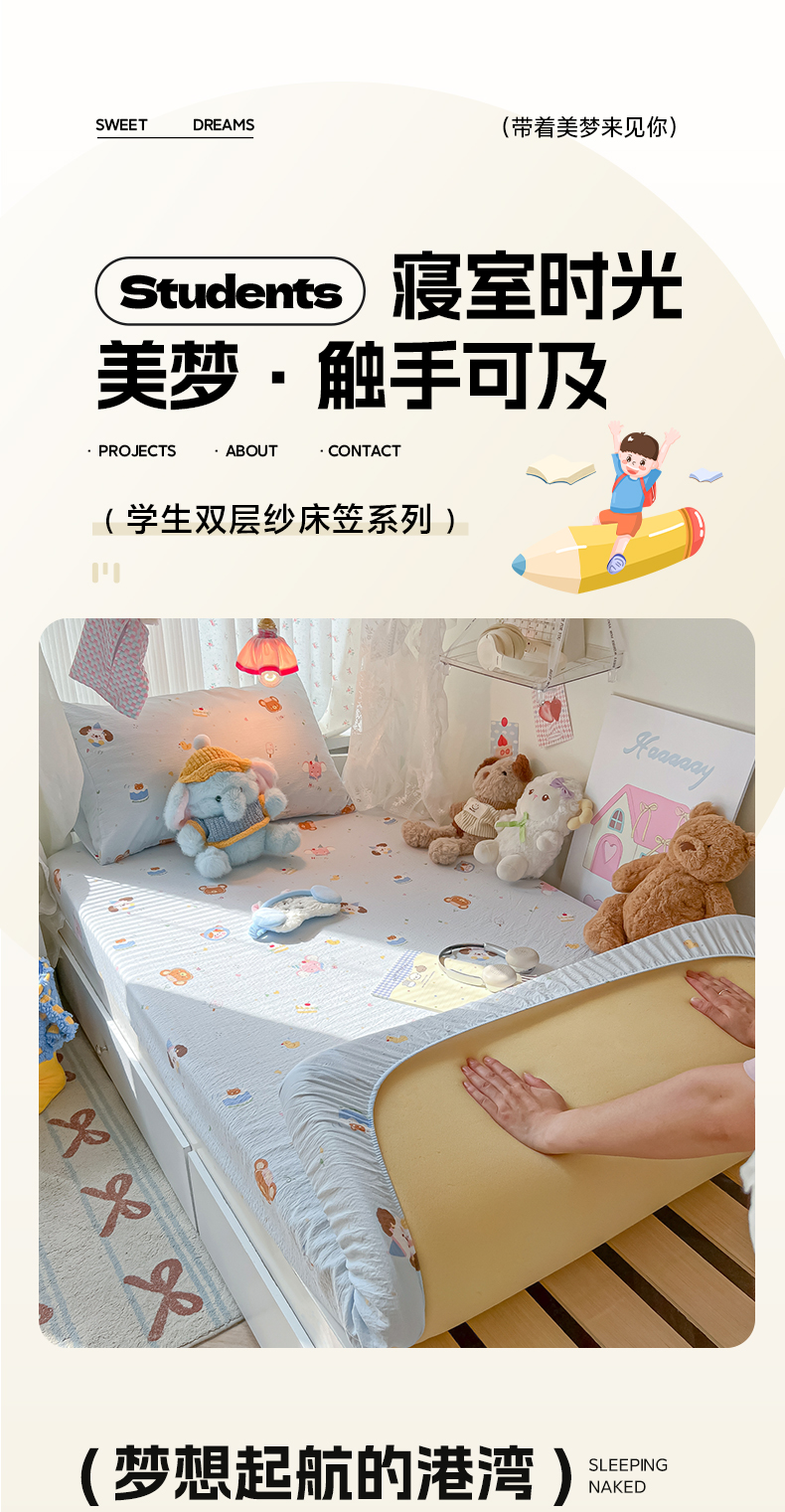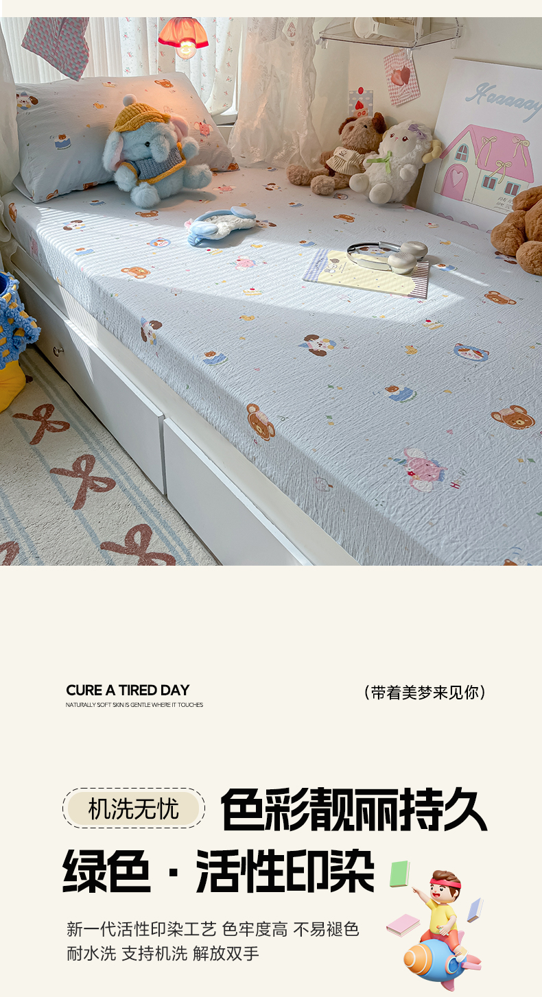• 91家纺网 家纺一手货源 找家纺 韩巢家纺 2025新款A类学生宿舍上下铺床笠单件床垫保护罩枕套三件套 生日宴会兰