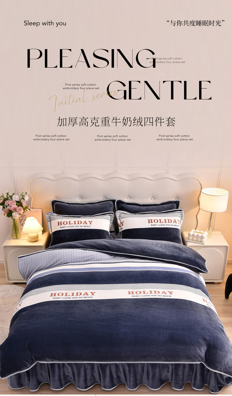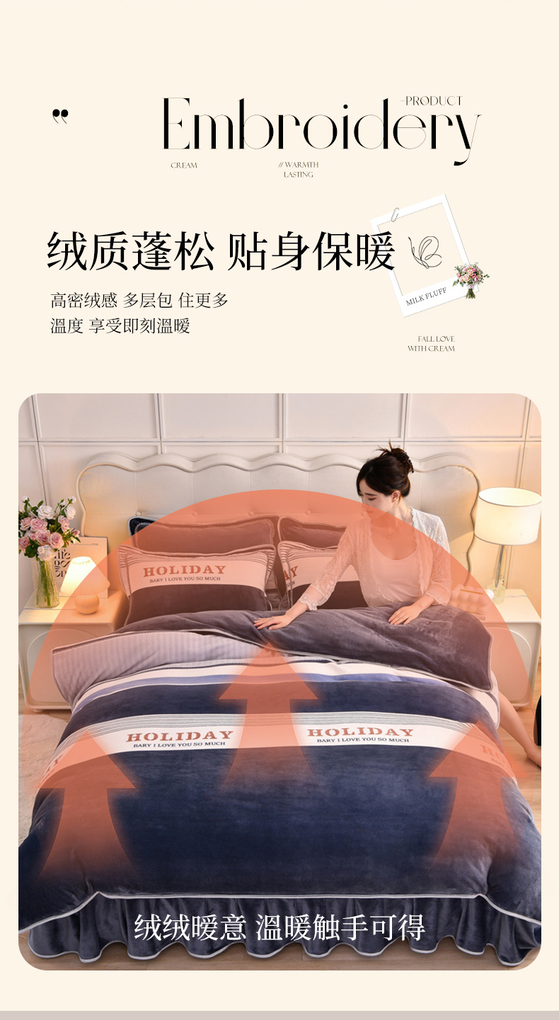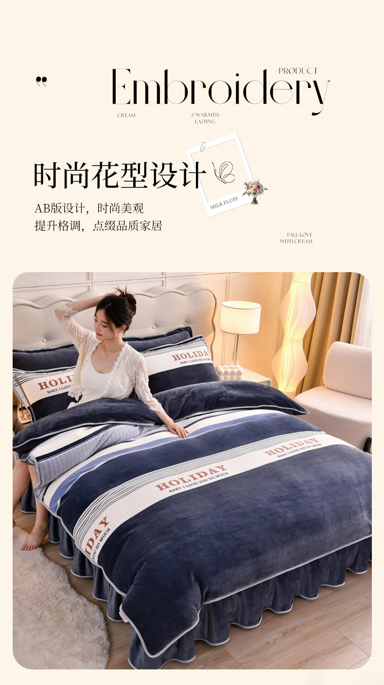 当前位置: 91家纺网 > 商品网购 > 床品套件 > 四件套 > 牛奶绒四件套 > 绒宴 2025新款8.5斤牛奶绒金貂法莱绒床裙款保暖四件套 绅士条纹