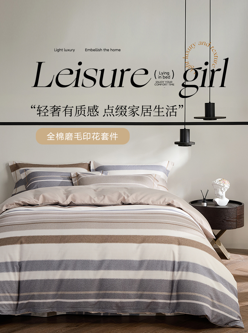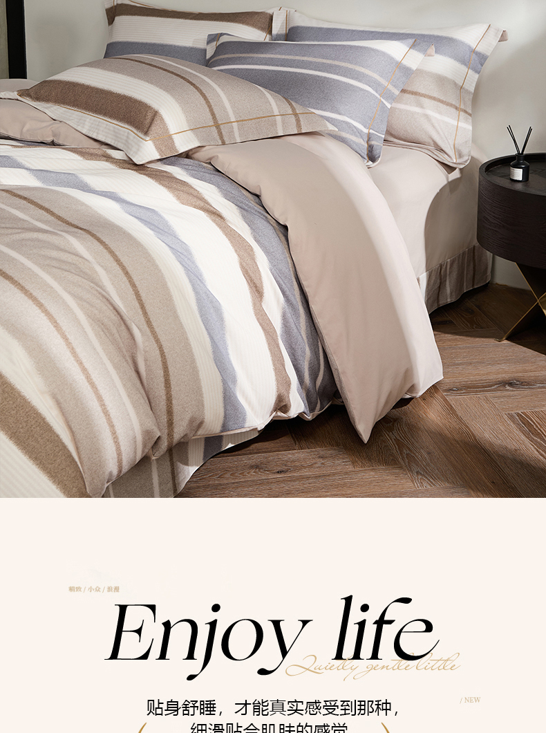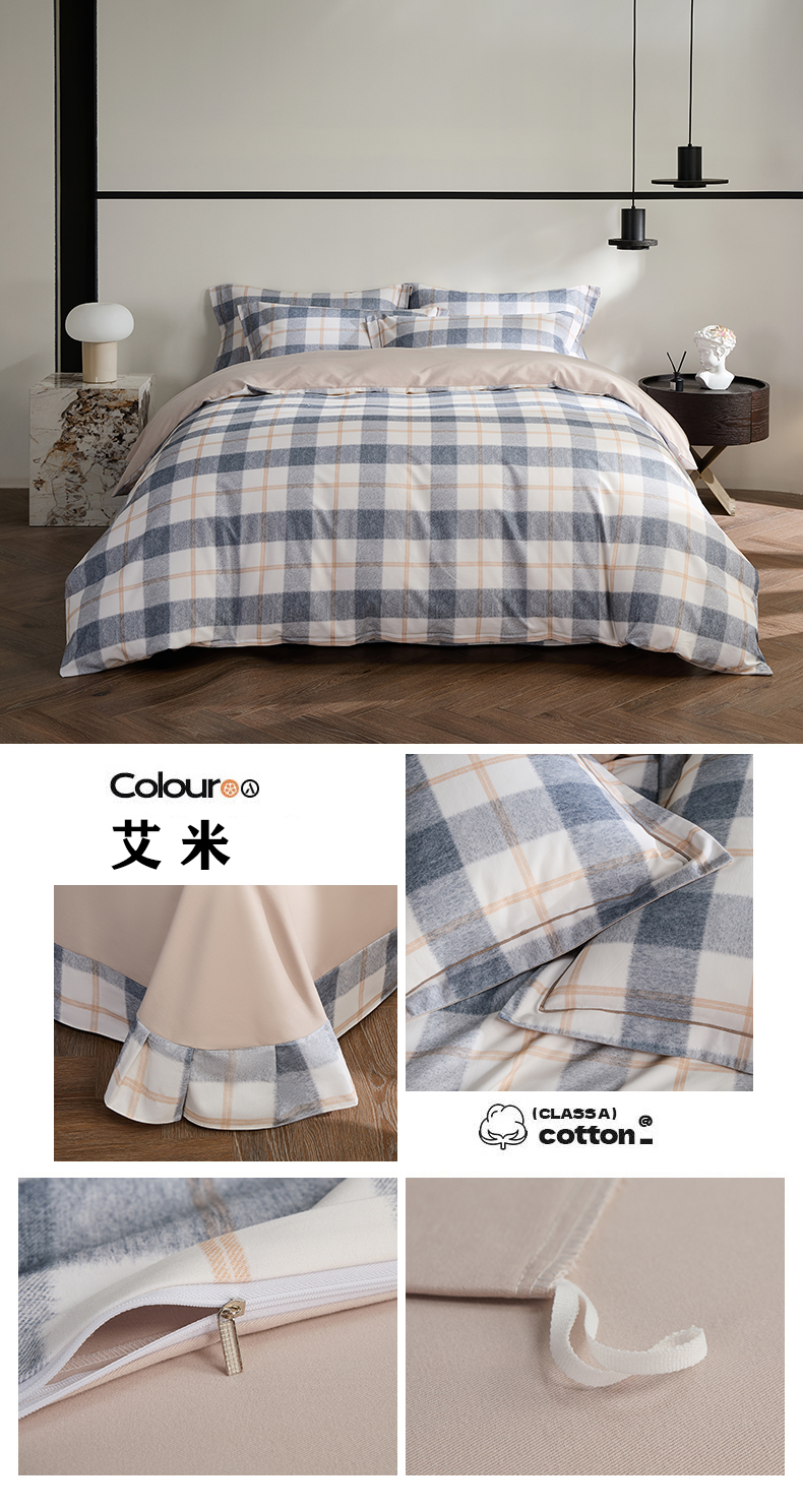 薏思家纺 2025新款全棉纯棉活性生态磨毛数码印花四件套-条格卡通类 伯克利