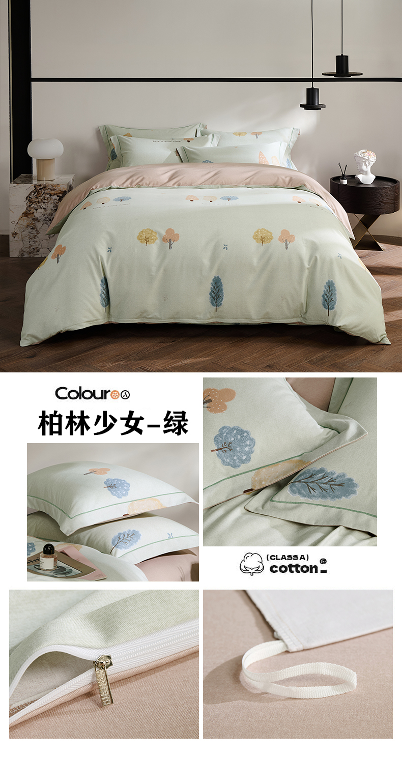 (总)薏思家纺 2025新款全棉100支数码印花生态磨毛轻奢款四件套-花边系列,橘子海,向云端,寻野-绿