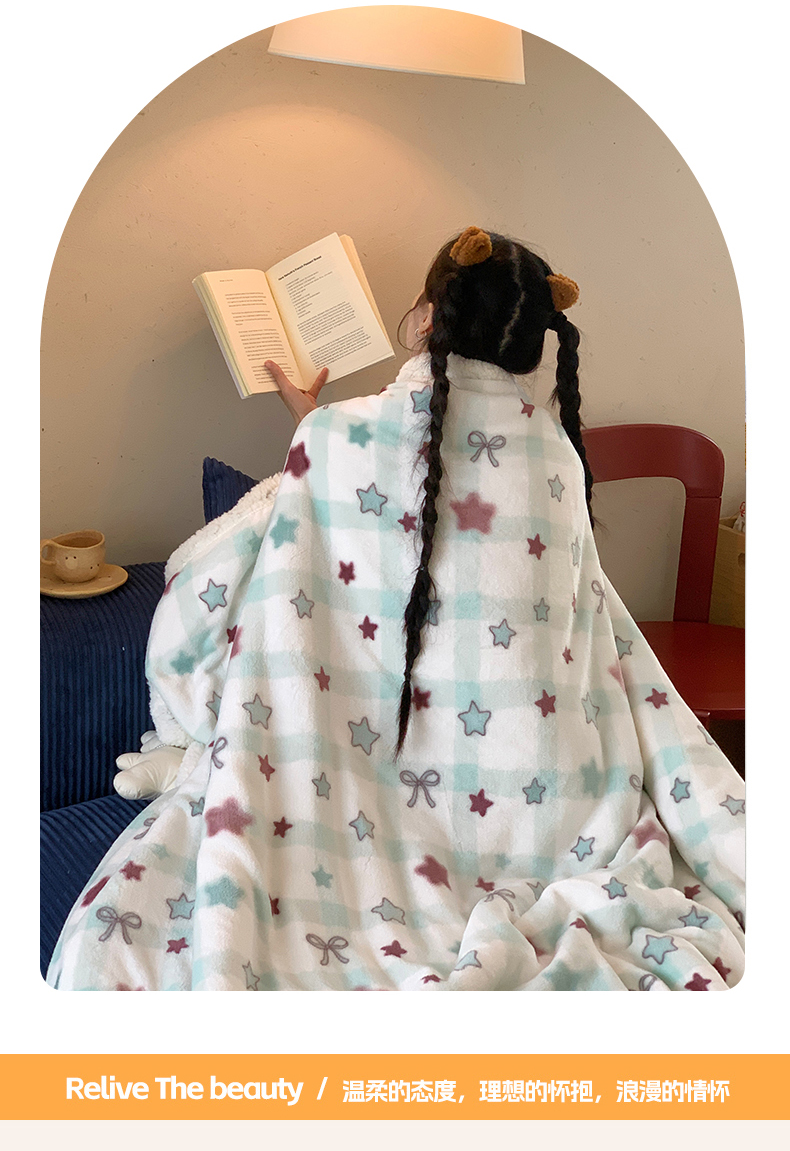 (总)桃喜 2024新款牛奶绒羊羔绒条纹系列盖绒毛毯午休毯多功能毛毯-场景二,多巴胺彩条,蓝咖条纹,栗子粉条纹,美式复古红蓝条,美式复古黄蓝条