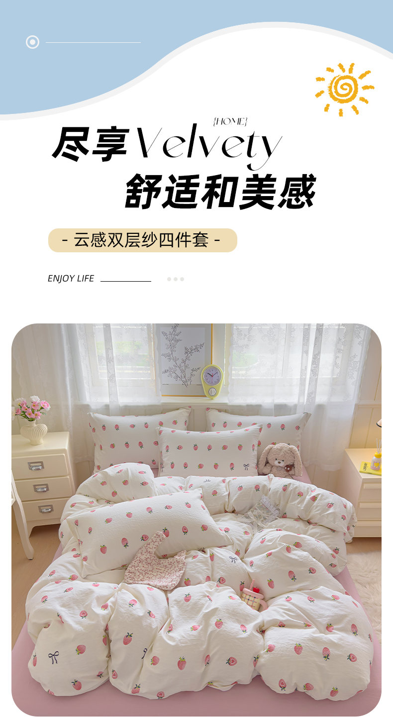 当前位置: 91家纺网 > 商品网购 > 床品套件 > 四件套 > 双层纱四件套 > 好亿来家纺 2025新款加厚A类云感双层纱四件套 恋恋熊