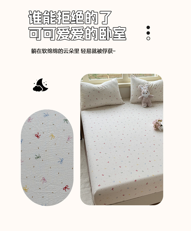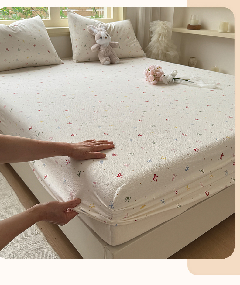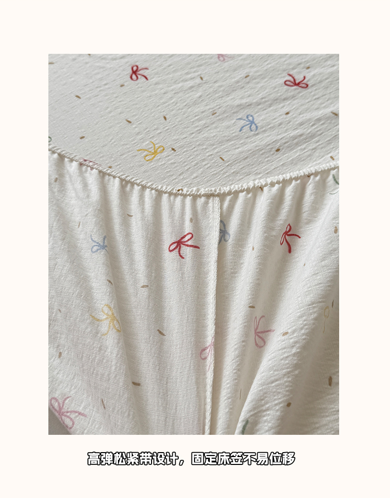 叠派家纺 2025新款A类双层纱提花单品床笠系列 彩色蝴蝶结