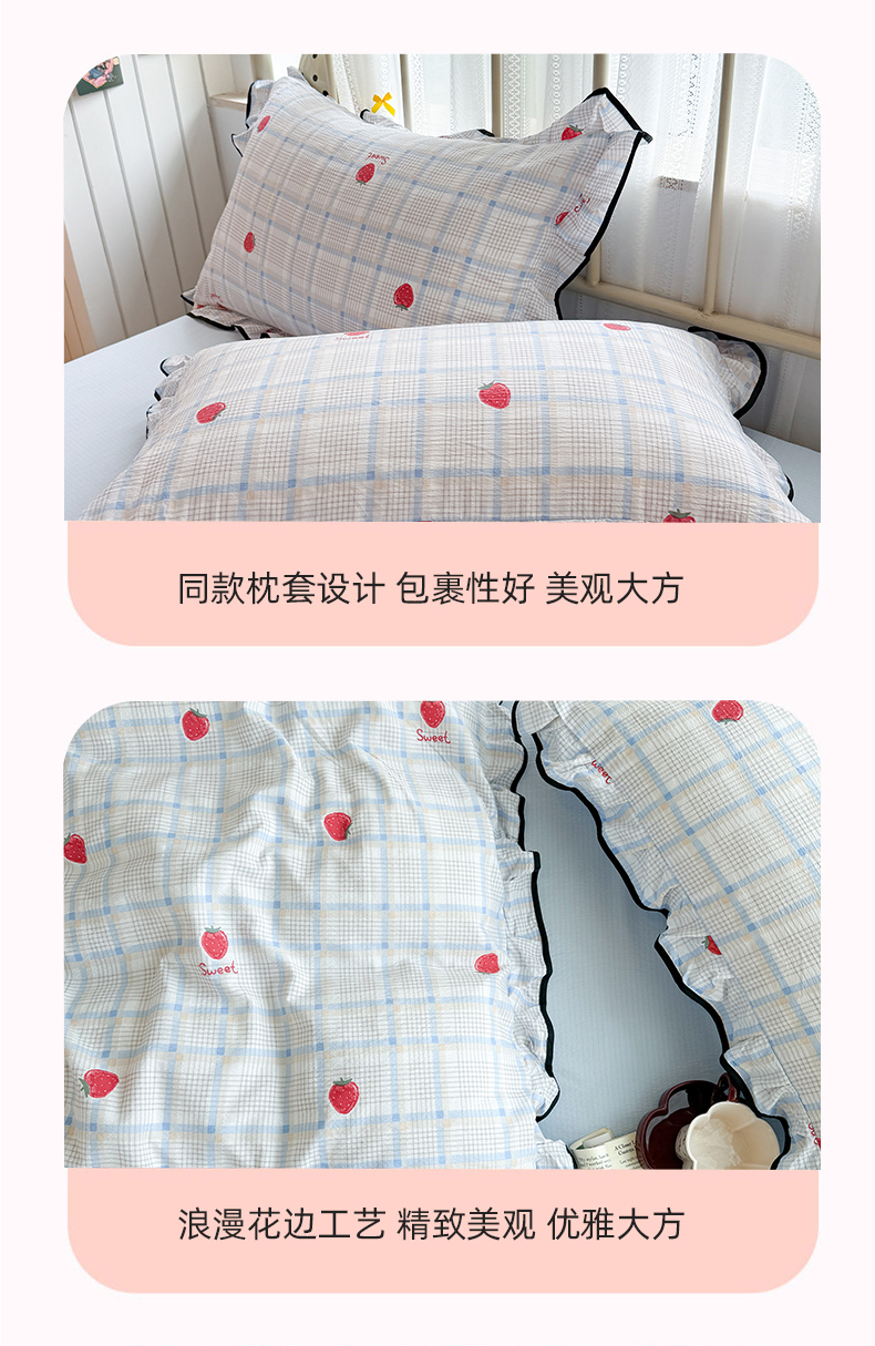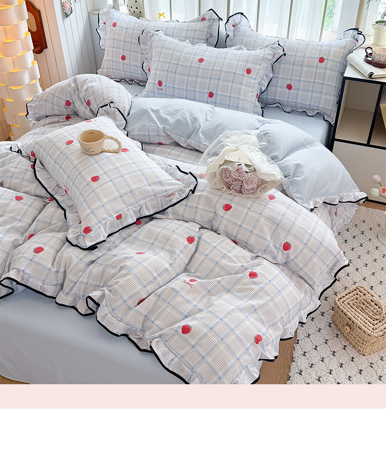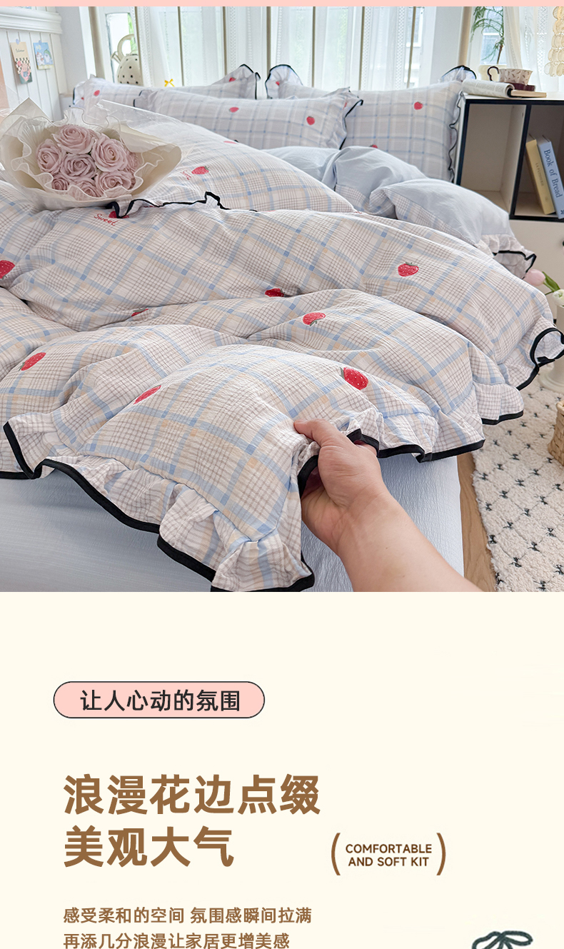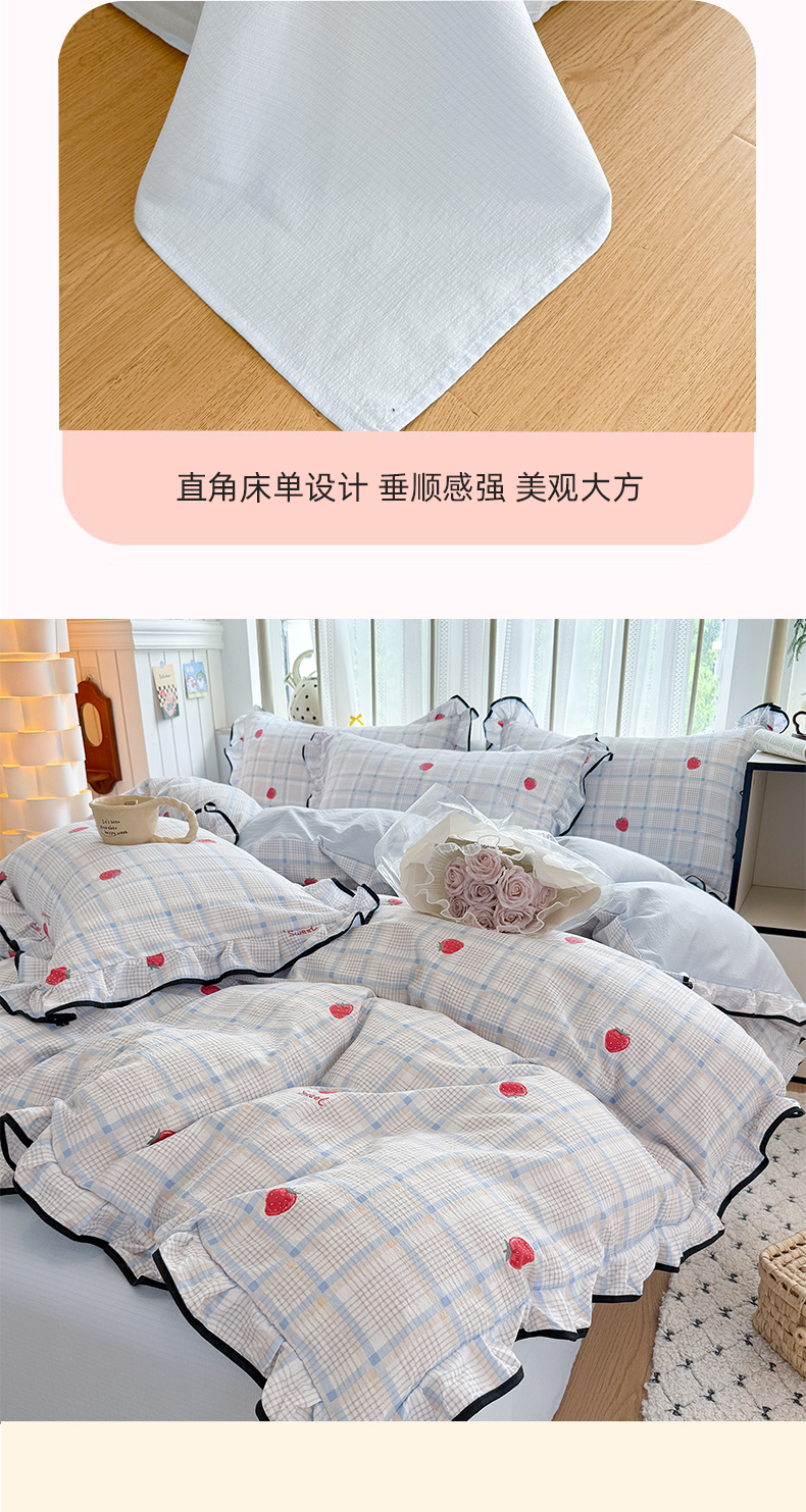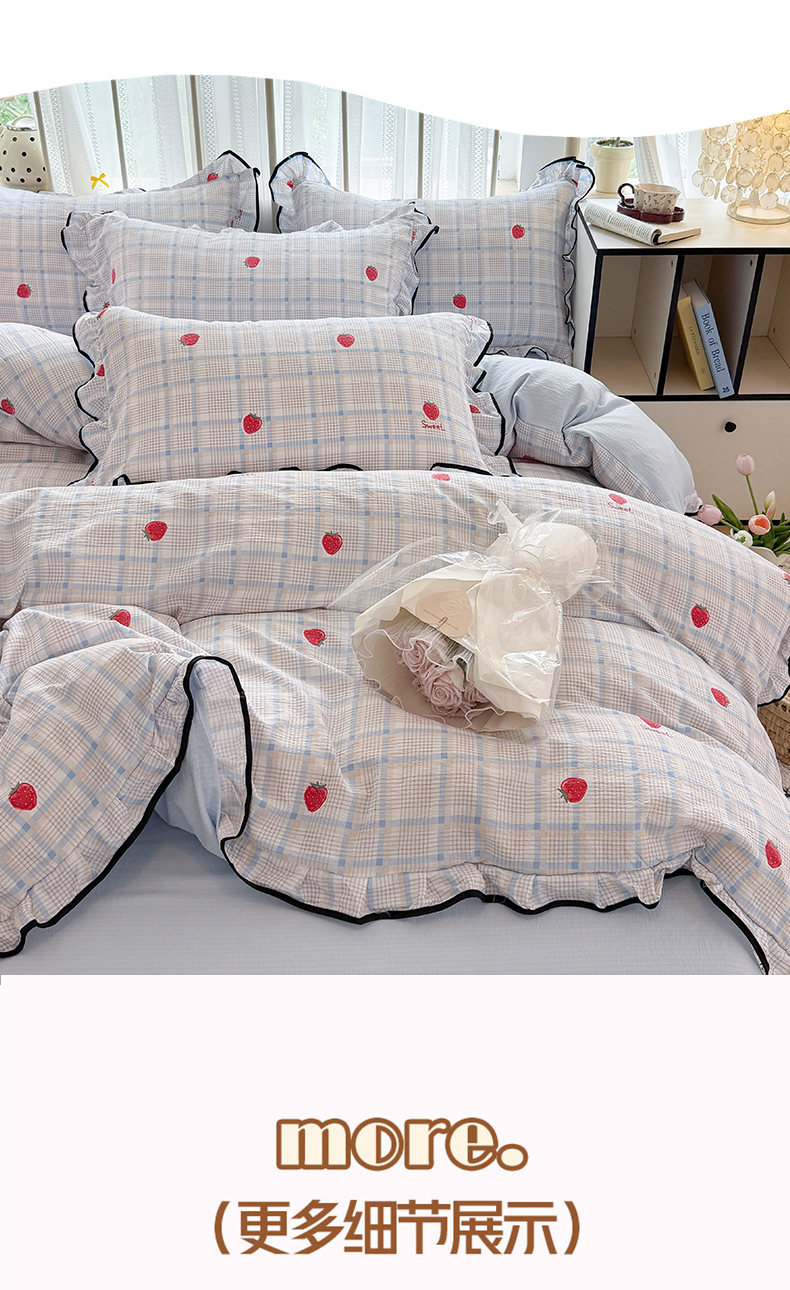 当前位置: 91家纺网 > 商品网购 > 床品套件 > 四件套 > 双层纱四件套 > 艾特你 2025新款云感皱皱双层纱黑色包边四件套 黑边-格子草莓