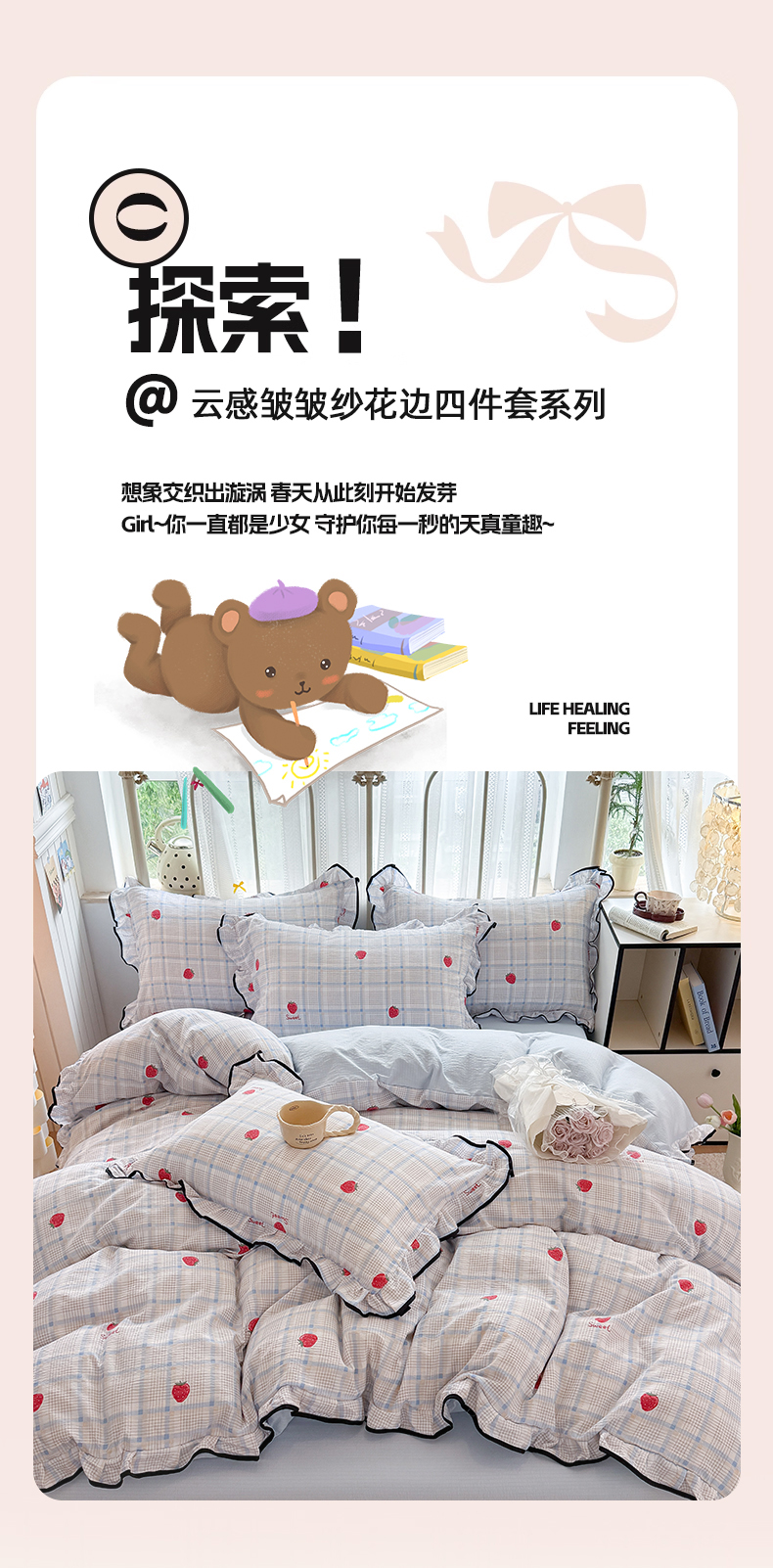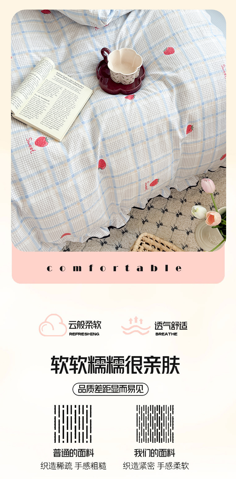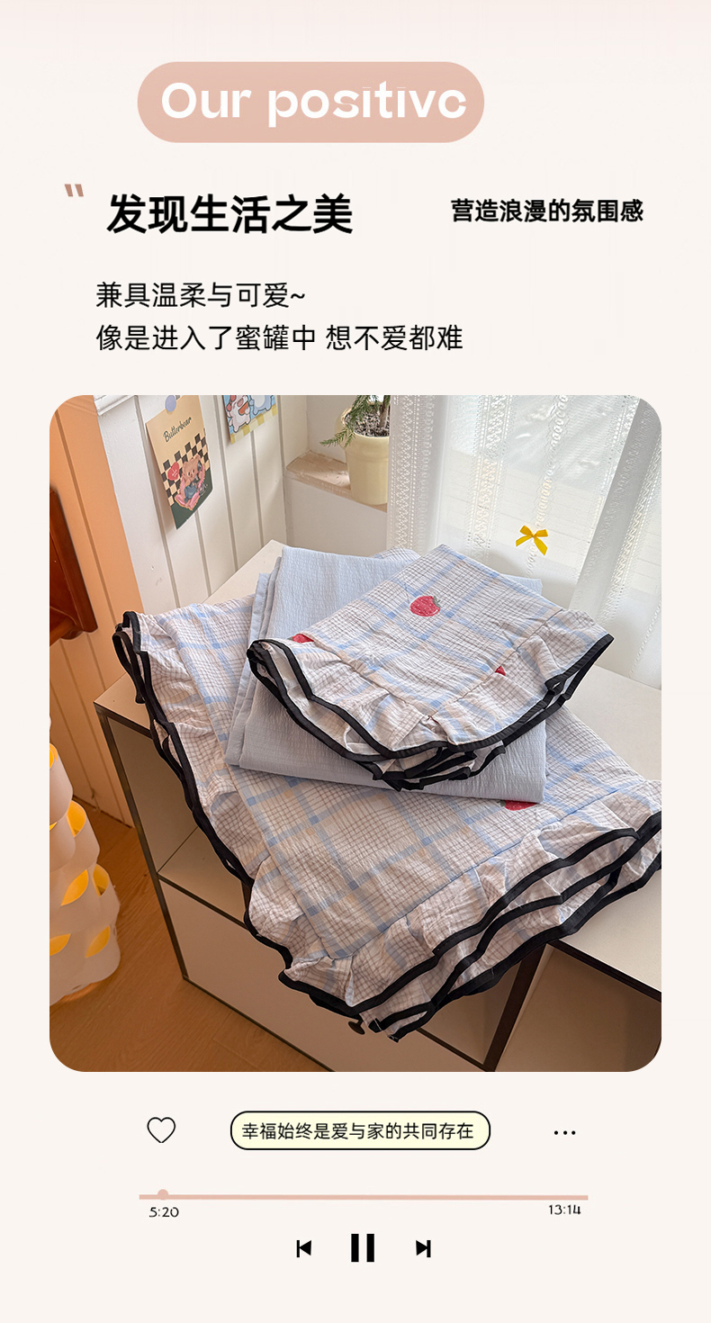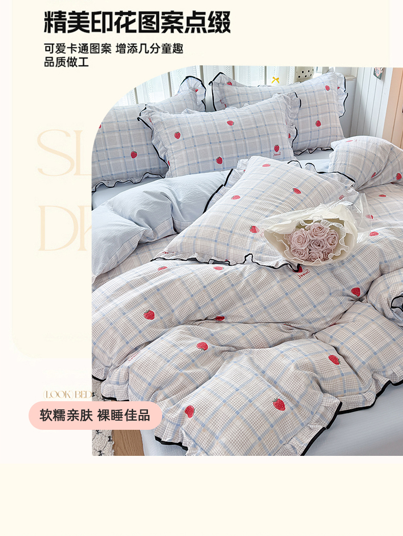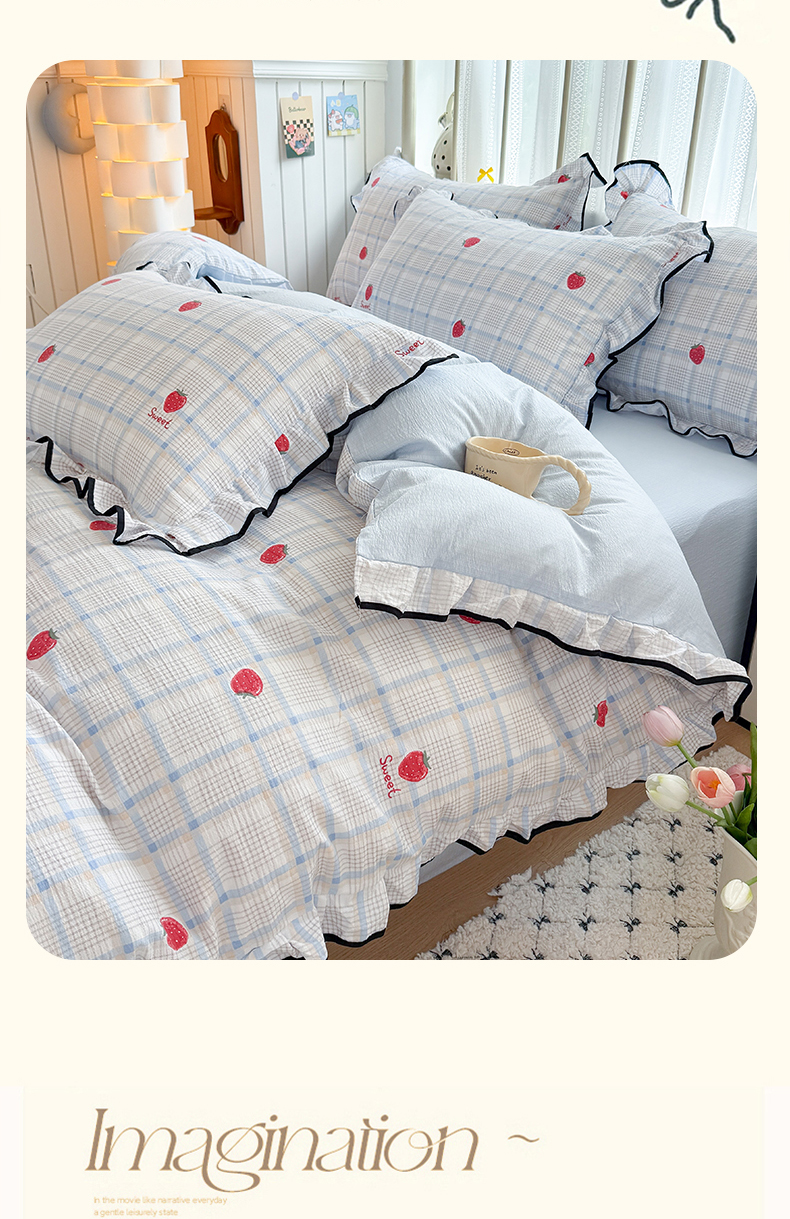 当前位置: 91家纺网 > 商品网购 > 床品套件 > 四件套 > 双层纱四件套 > 艾特你 2025新款云感皱皱双层纱黑色包边四件套 黑边-格子草莓