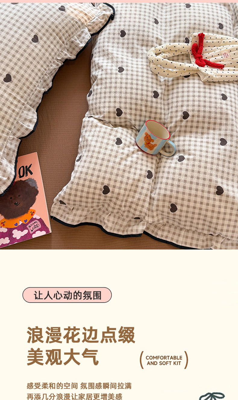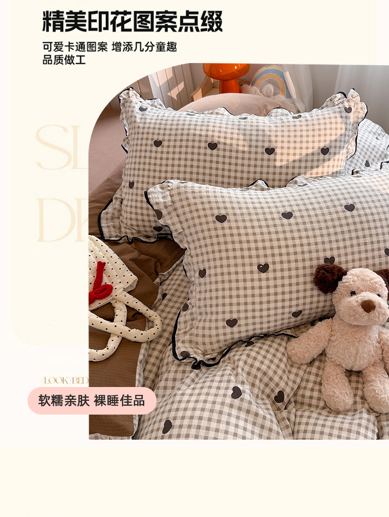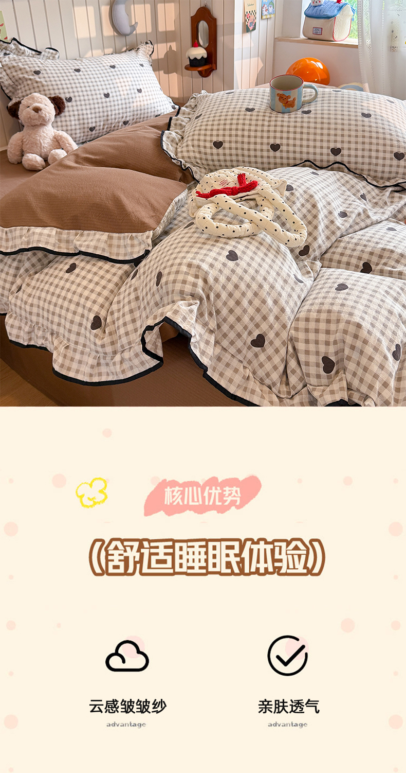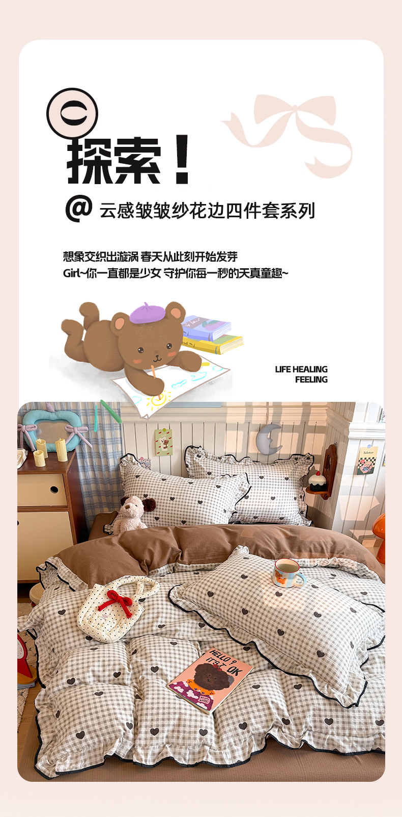 当前位置: 91家纺网 > 商品网购 > 床品套件 > 四件套 > 双层纱四件套 > 艾特你 2025新款云感皱皱双层纱黑色包边四件套 黑边-心格