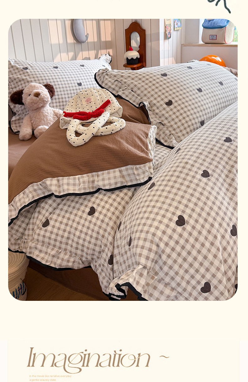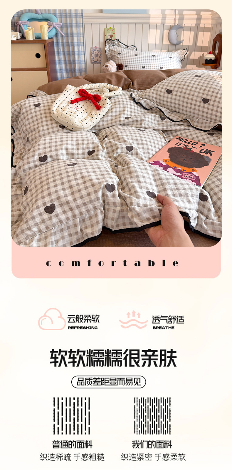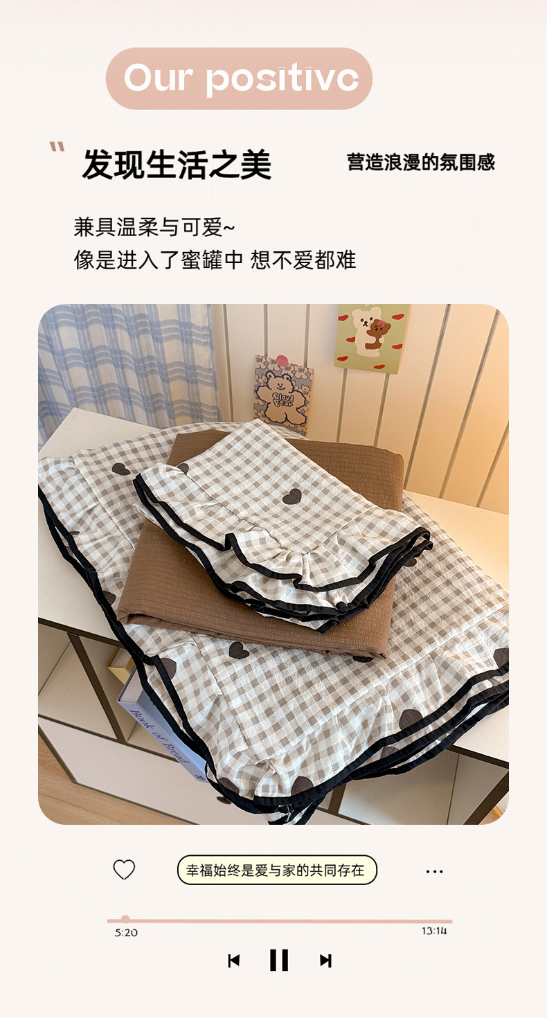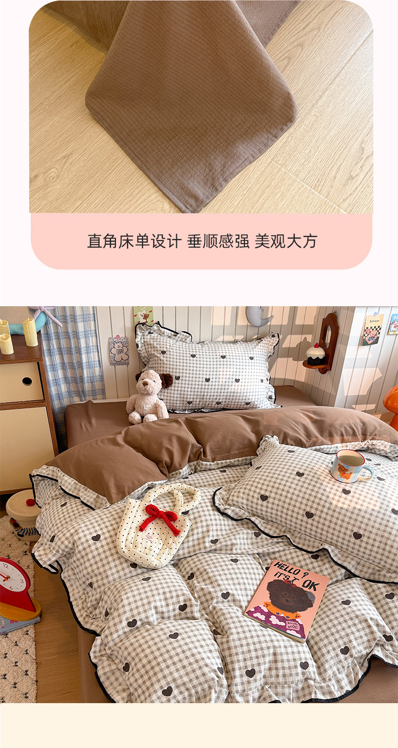 当前位置: 91家纺网 > 商品网购 > 床品套件 > 四件套 > 双层纱四件套 > 艾特你 2025新款云感皱皱双层纱黑色包边四件套 黑边-心格