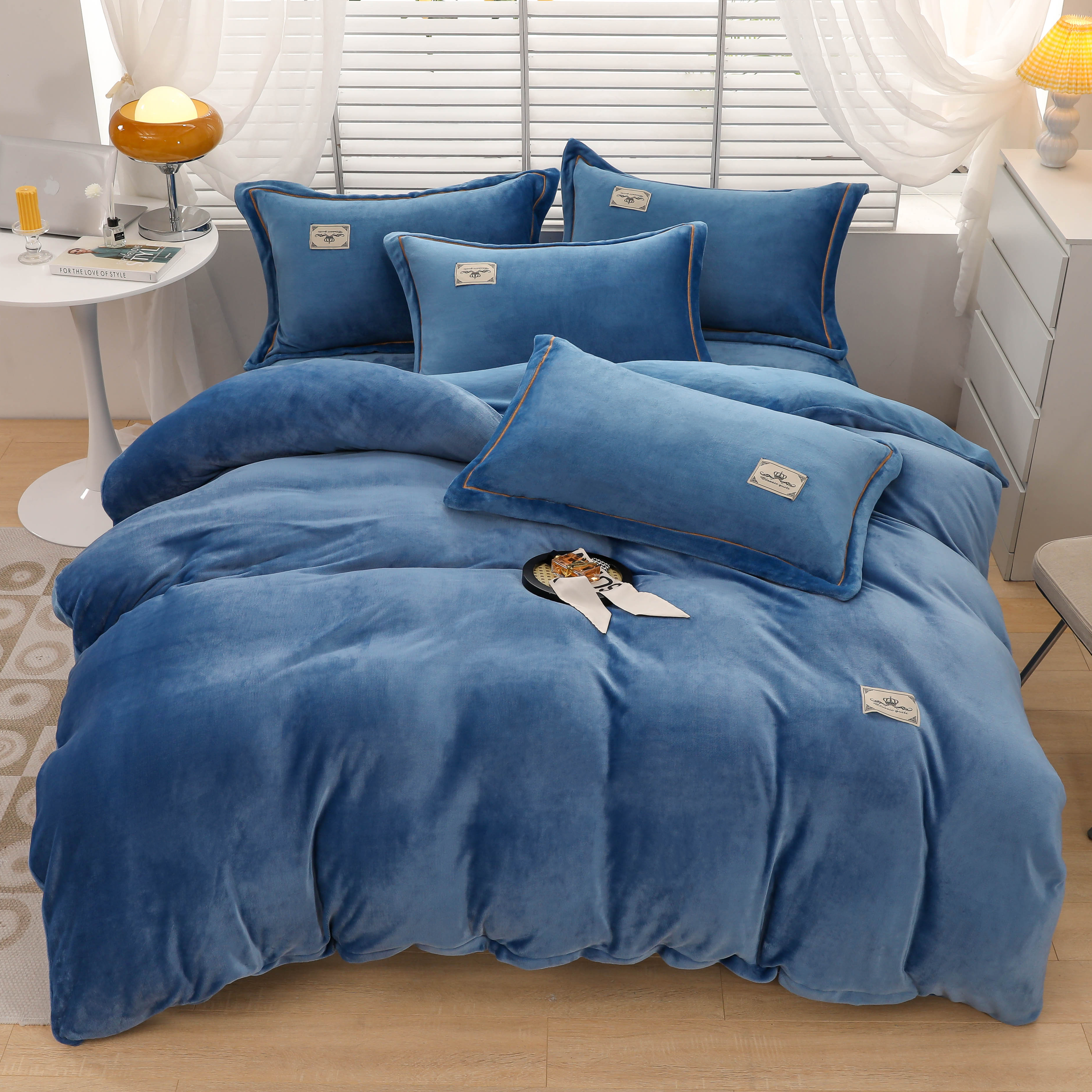 商品名称:优姿家纺 2025新款加厚全消光牛奶绒印花四件套 牛仔兰