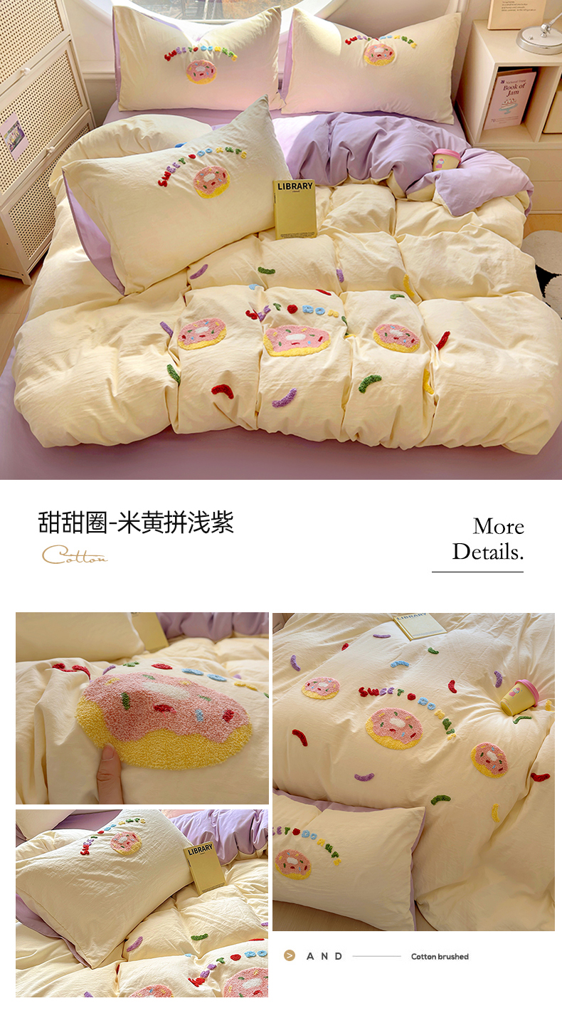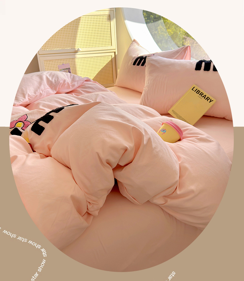 当前位置: 91家纺网 > 商品网购 > 床品套件 > 四件套 > 水洗棉四件套 > 韩秀家纺 2025新款水洗棉毛巾绣云朵棉四件套 心相印奶茶