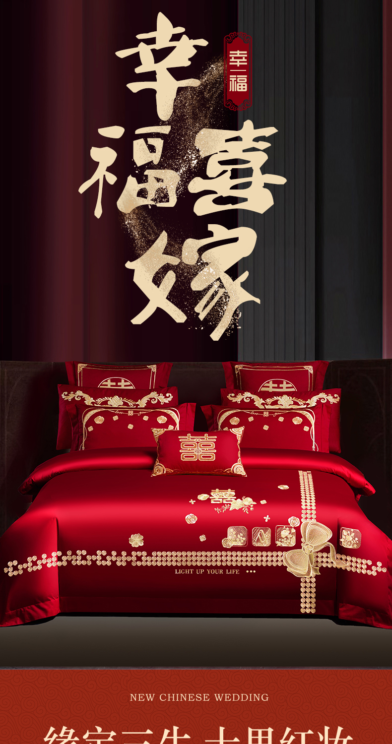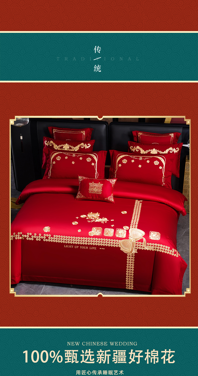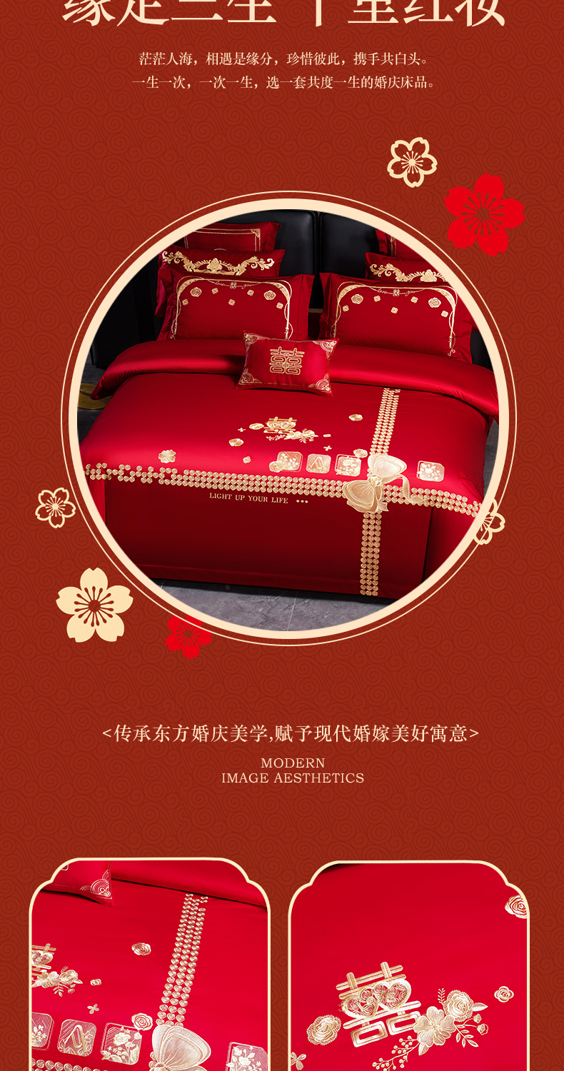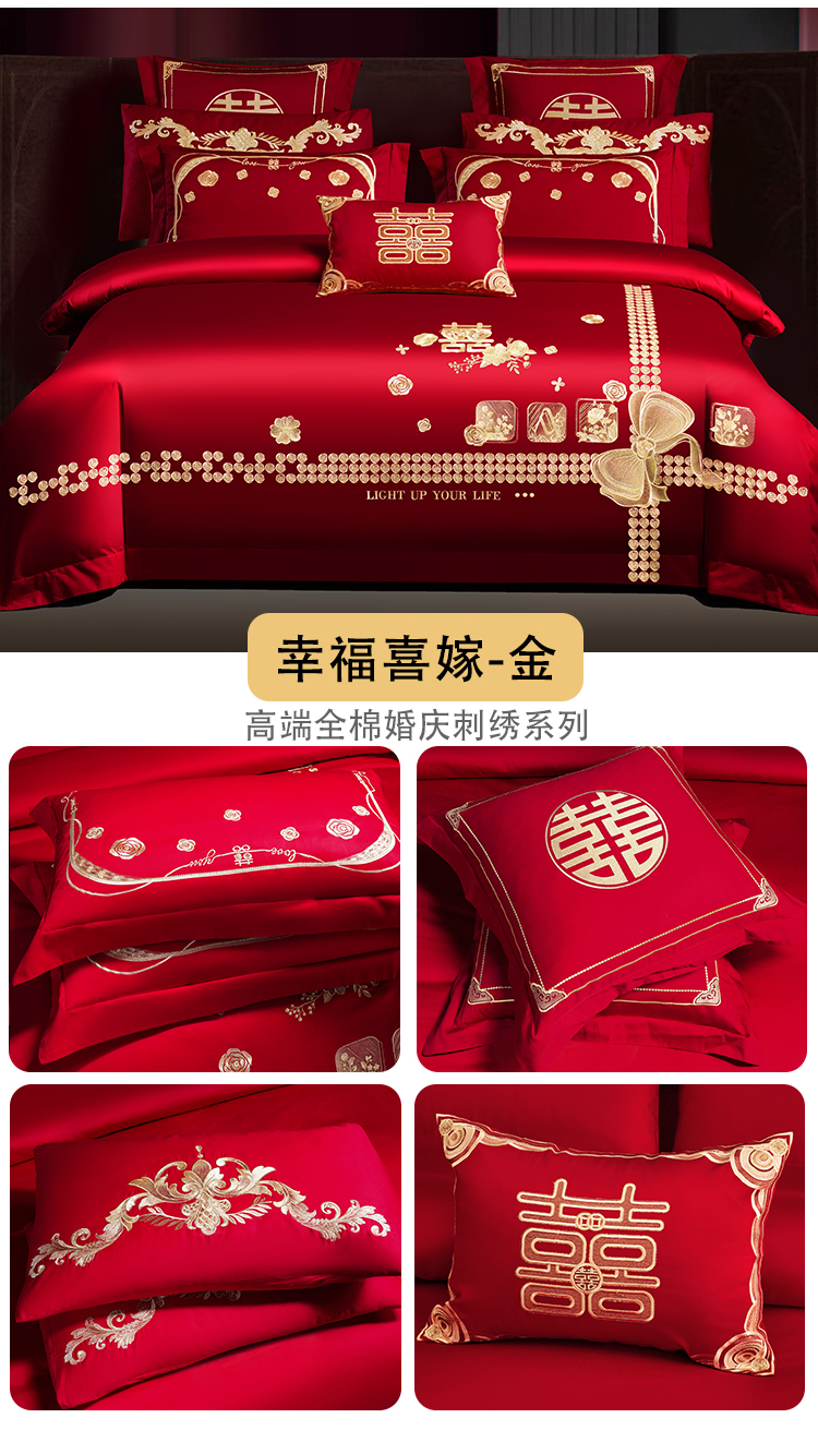 当前位置: 91家纺网 > 商品网购 > 床品套件 > 四件套 > 婚庆四件套 > 用心 2025新款婚庆全棉刺绣四件套多件套系列幸福喜嫁金