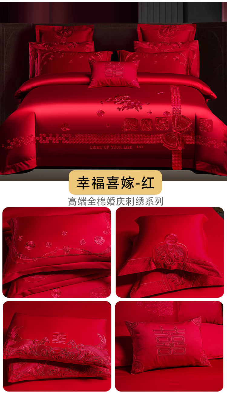 当前位置: 91家纺网 > 商品网购 > 床品套件 > 四件套 > 婚庆四件套 > 用心 2025新款婚庆全棉刺绣四件套多件套系列幸福喜嫁红