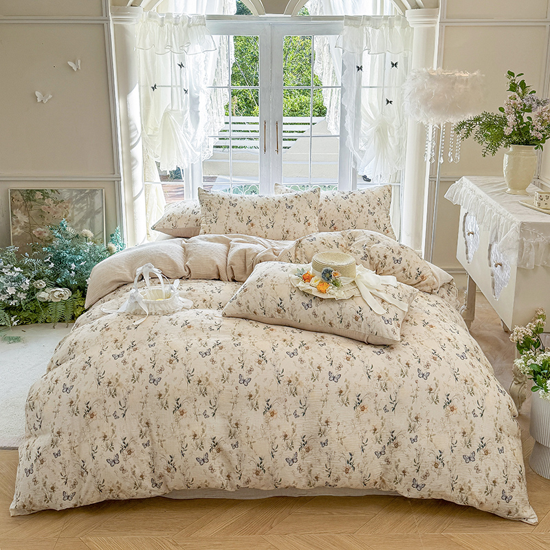 木楌 2025新款全棉A类皱皱纱印花四件套 春泥,春泥