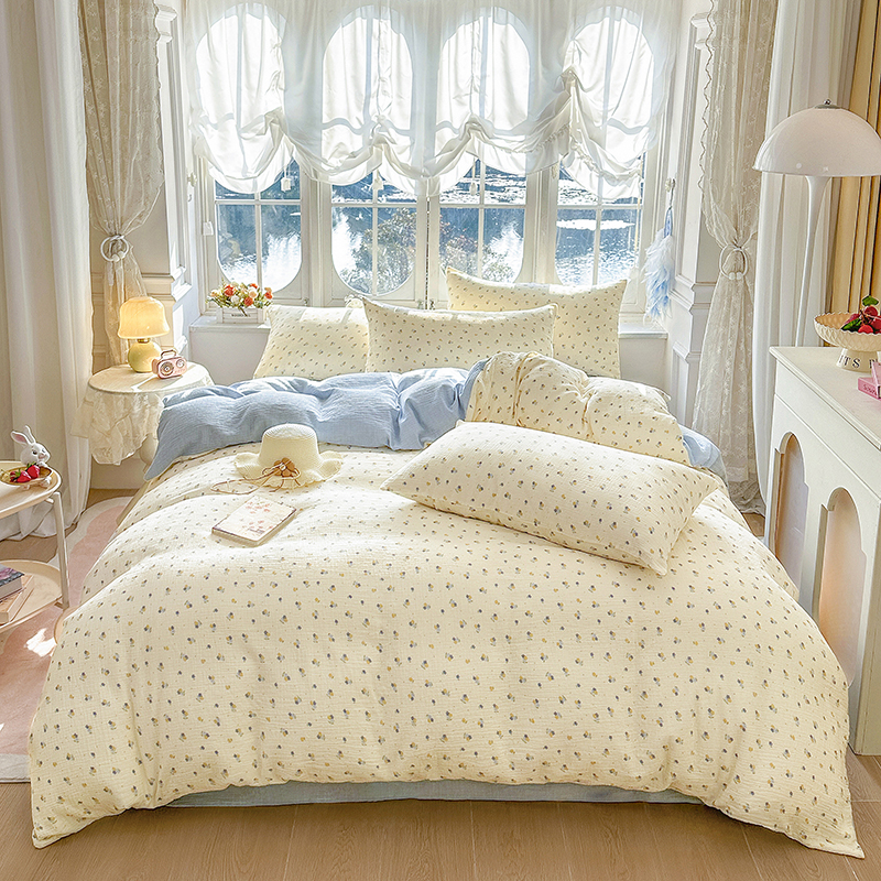 木楌家居 2025新款A类全棉皱皱纱印花四件套 西棠