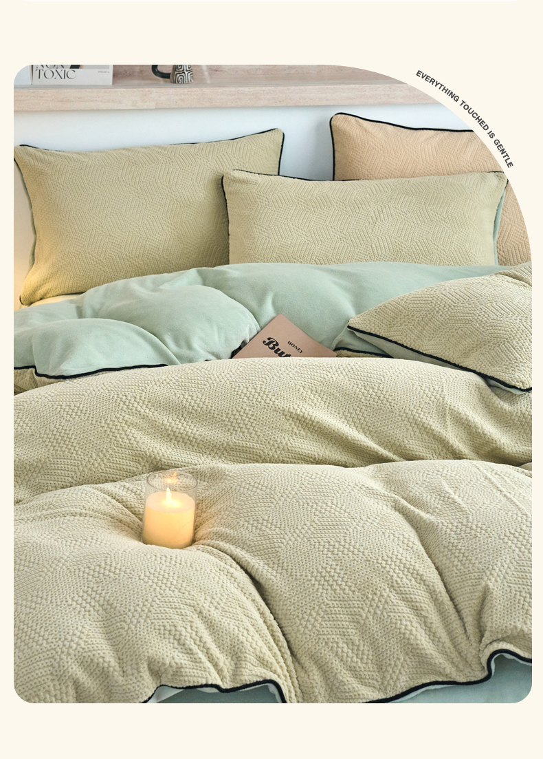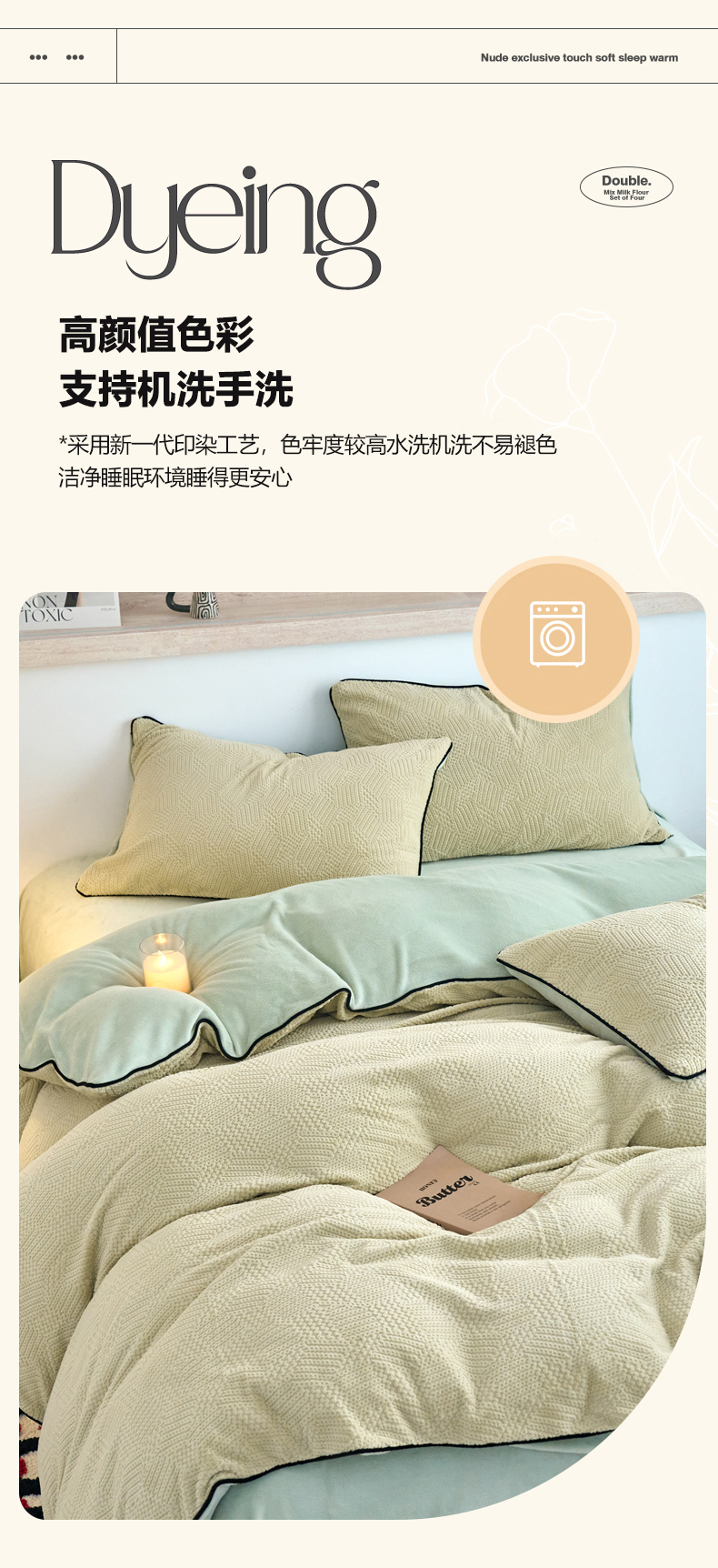 当前位置: 91家纺网 > 商品网购 > 床品套件 > 四件套 > 牛奶绒四件套 > 兰紫橙家纺 2025新款牛奶绒嵌边提花剪花四件套(含买家秀) 织梦-绿