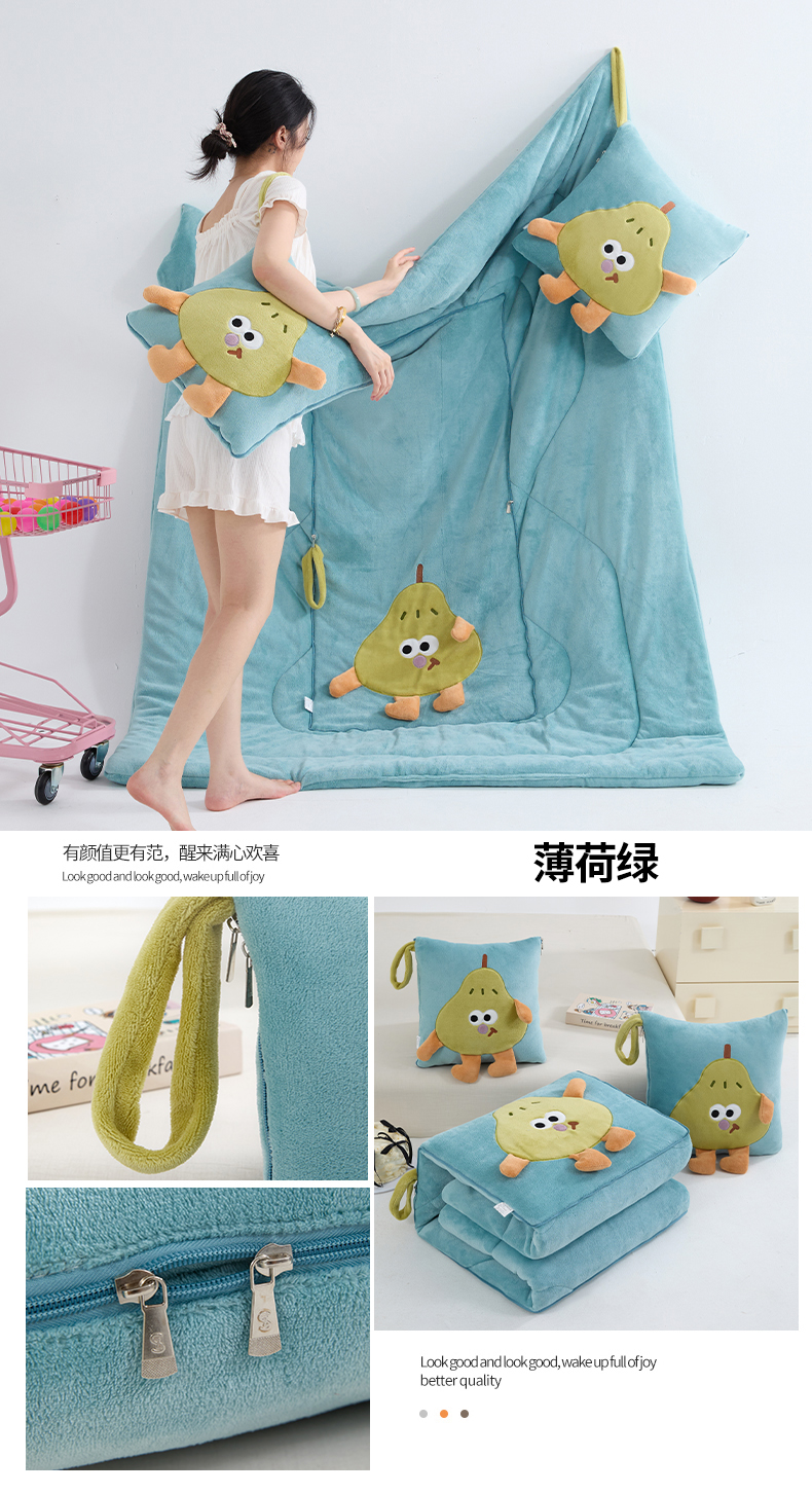 商品名称:照世家纺 2025新款牛奶绒抗菌棉pear款抱枕被 薄荷绿