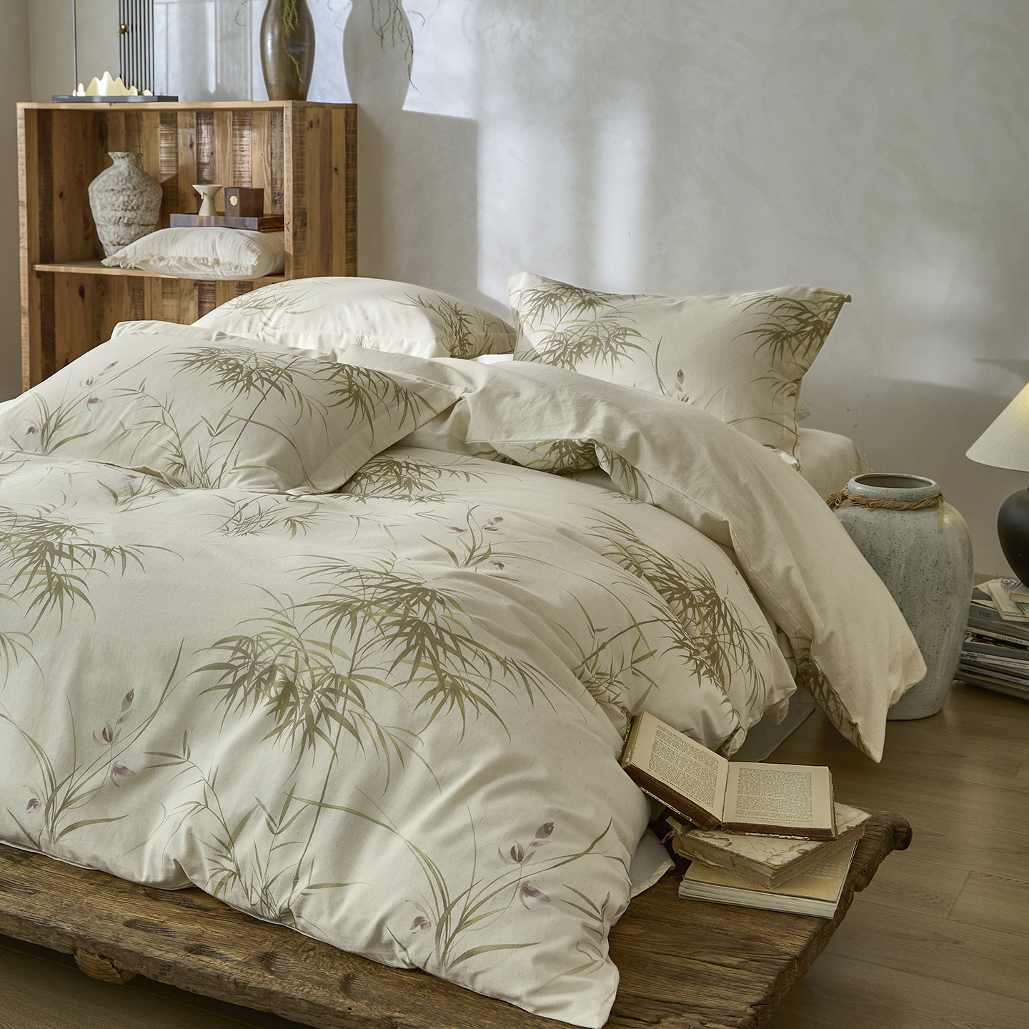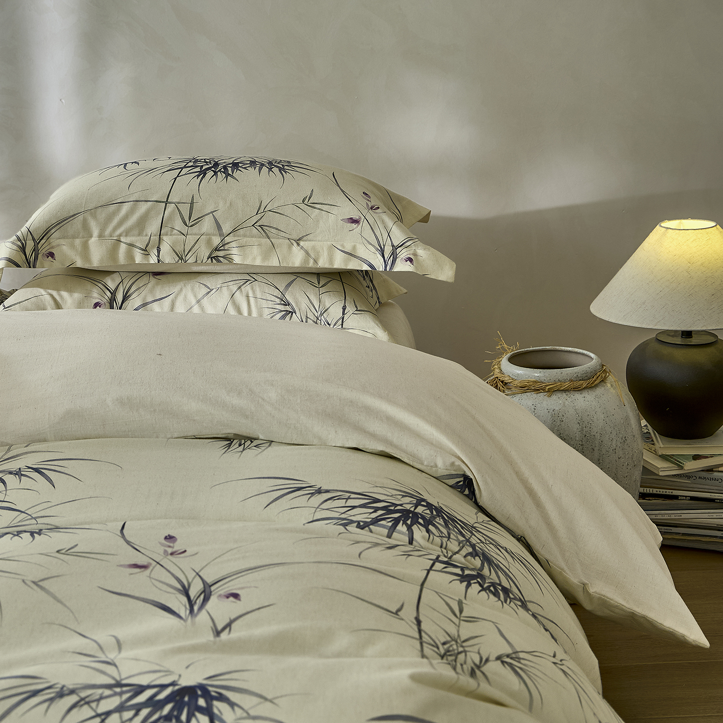 安莱生活 2025新款全棉纯棉印花棉麻四件套 江南竹-蓝
