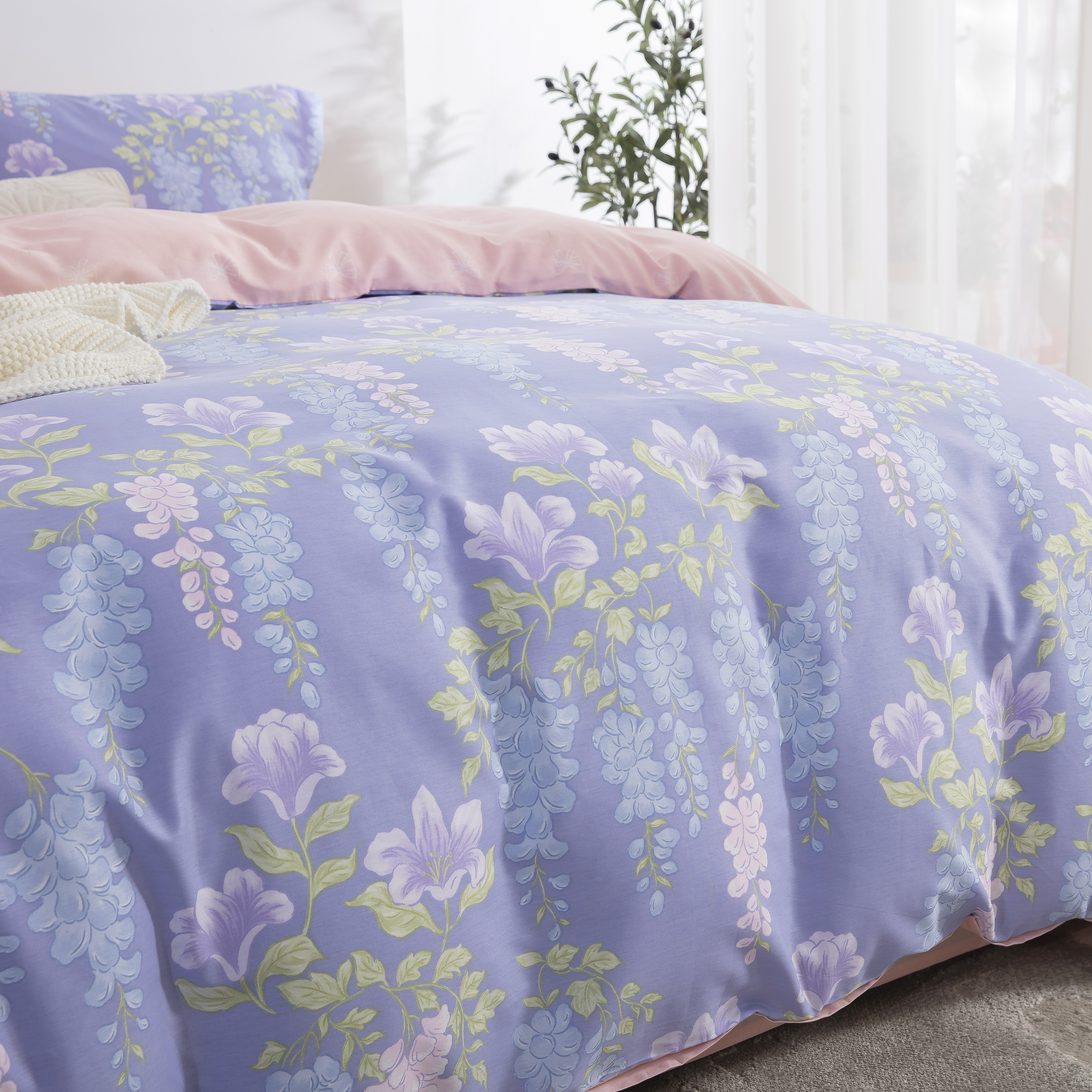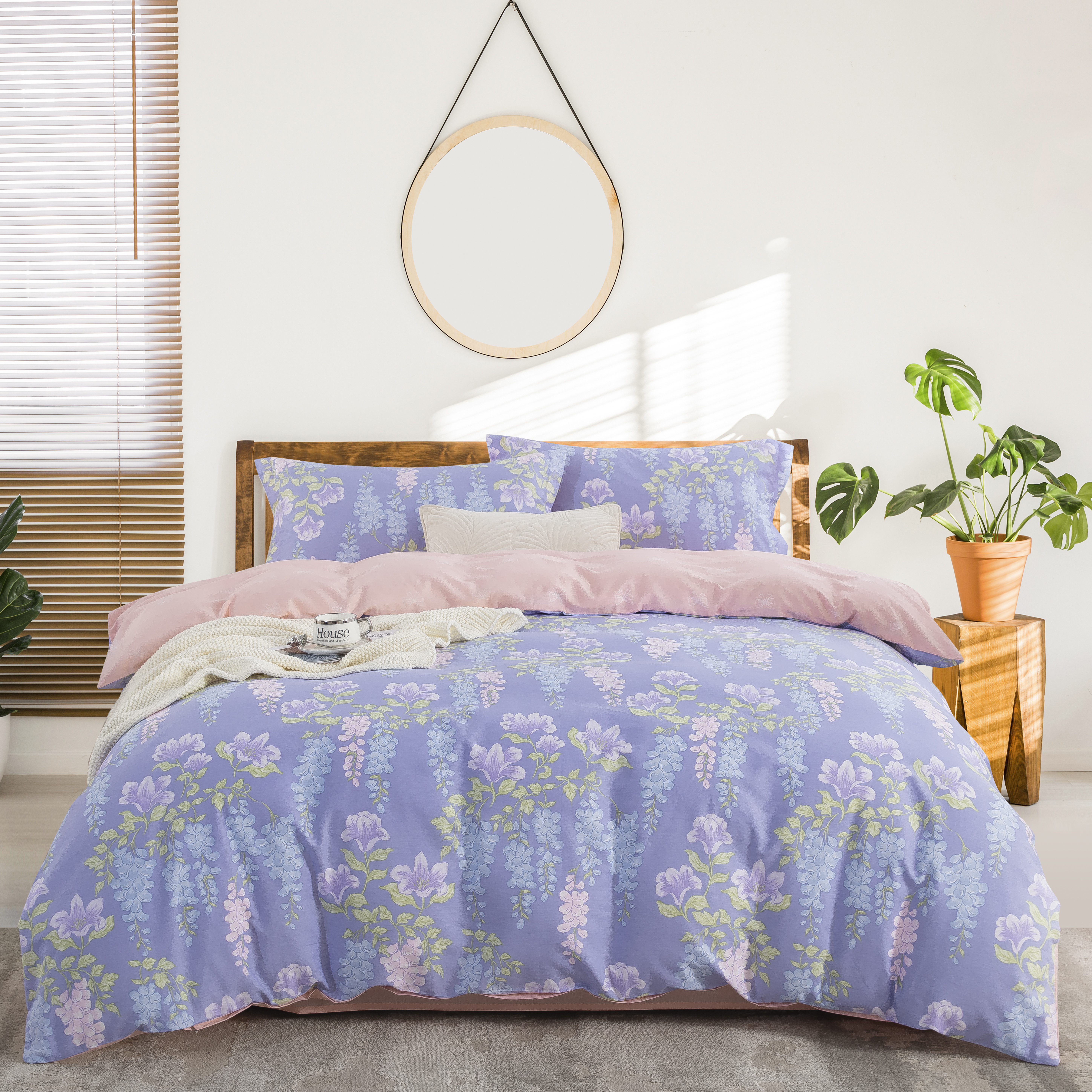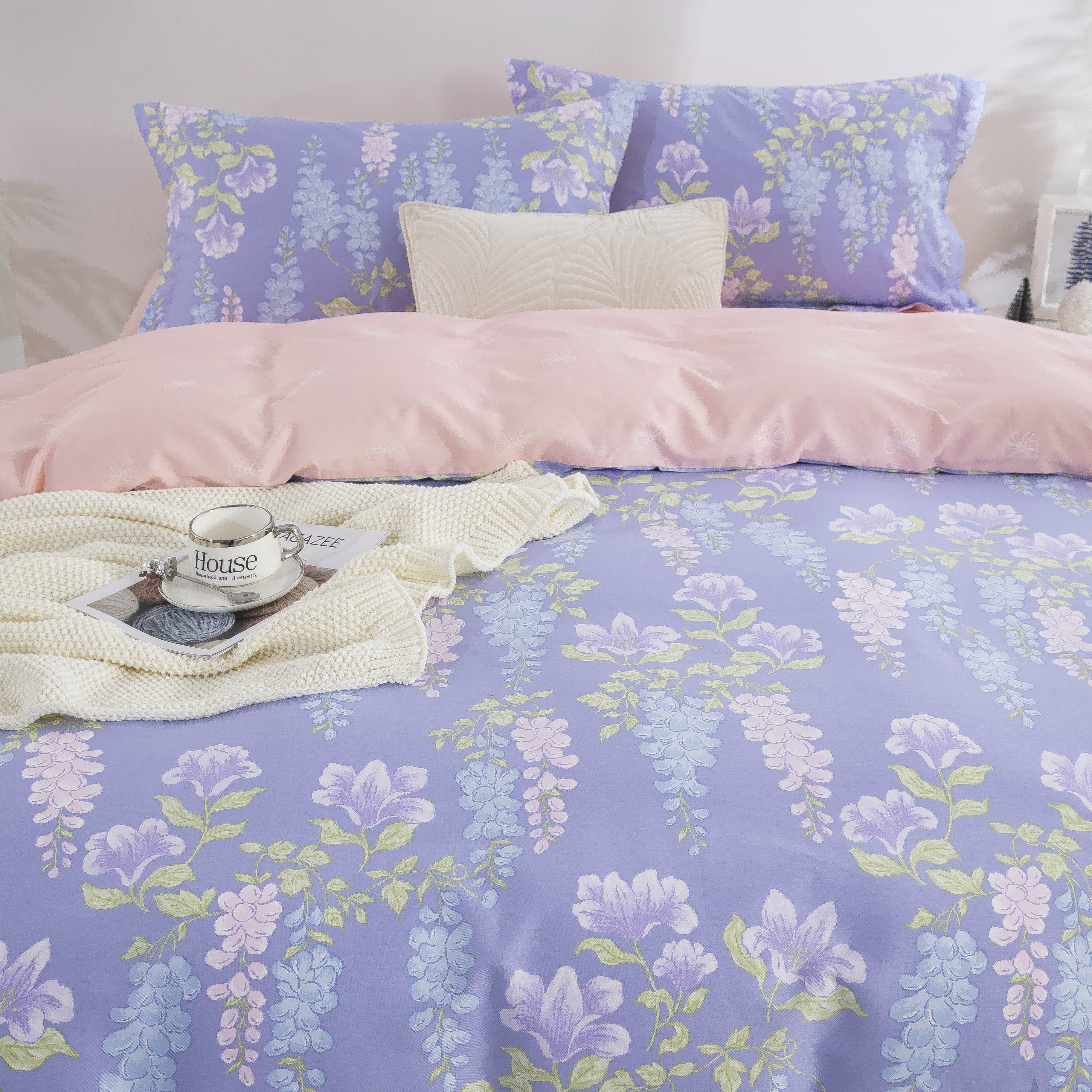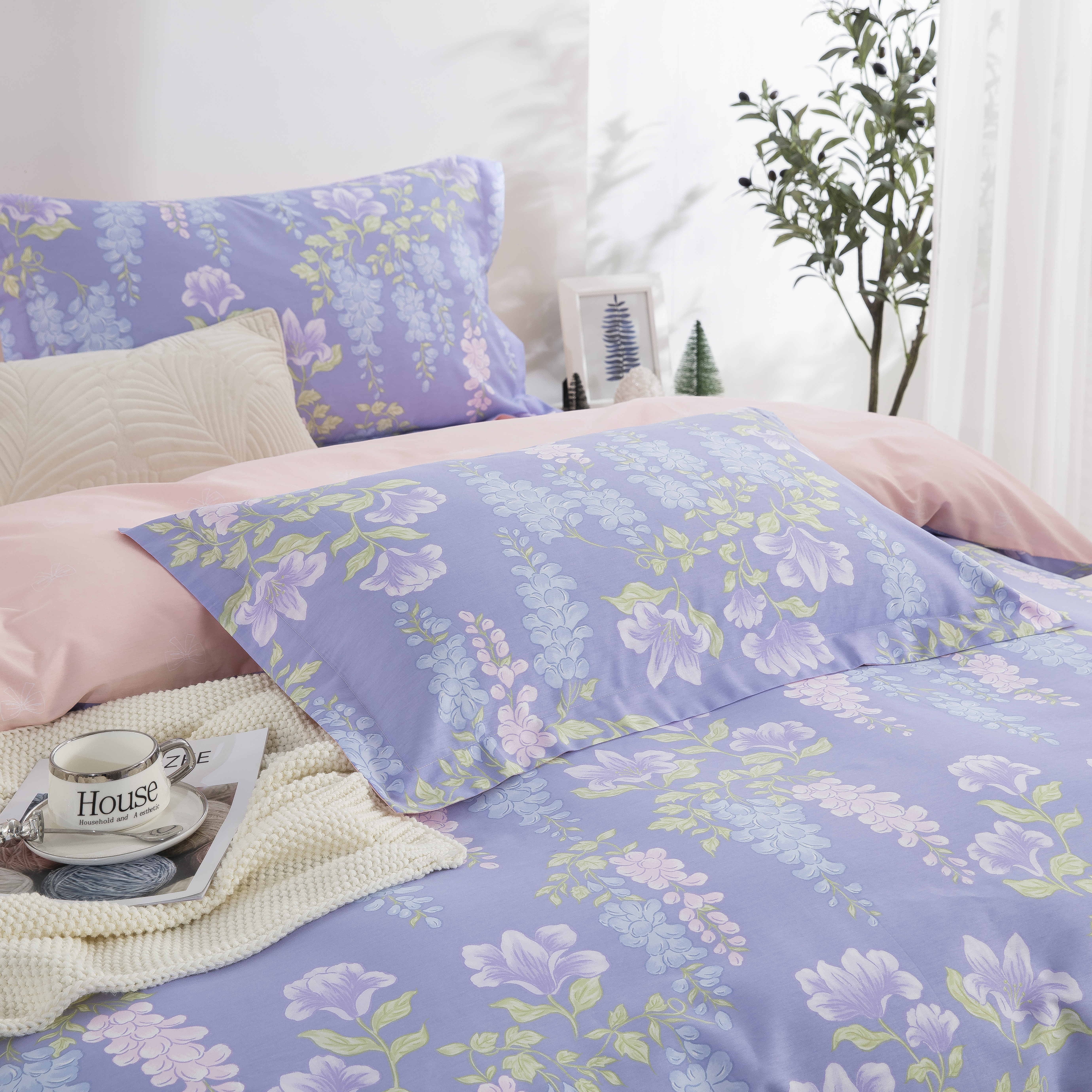 鲁爱家纺供货 全棉斜纹印花四件套 紫陌