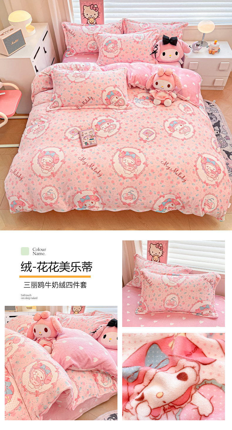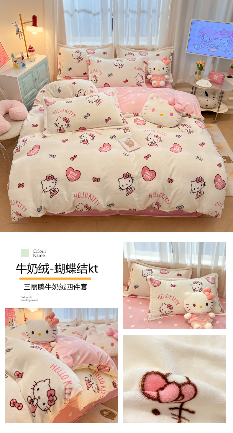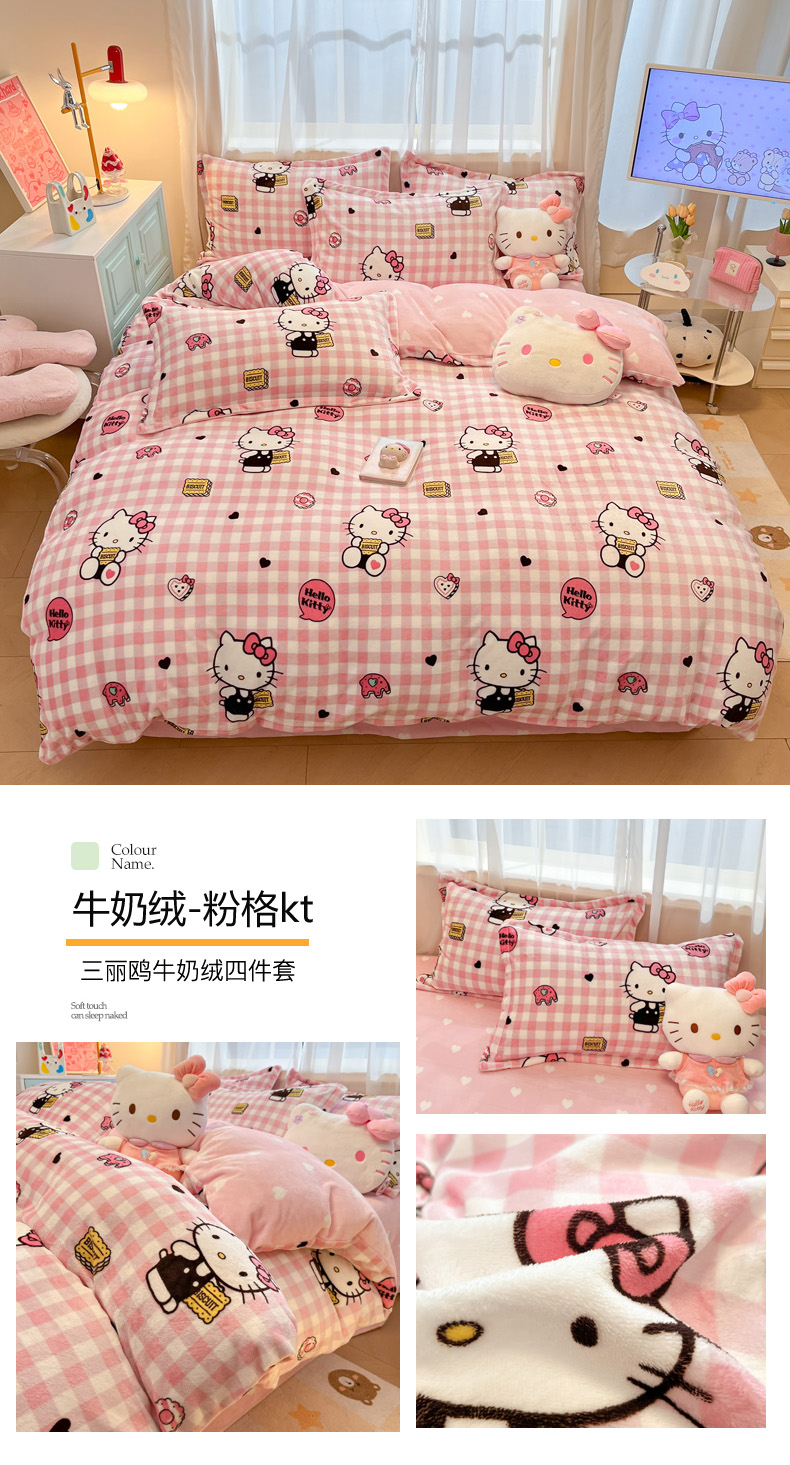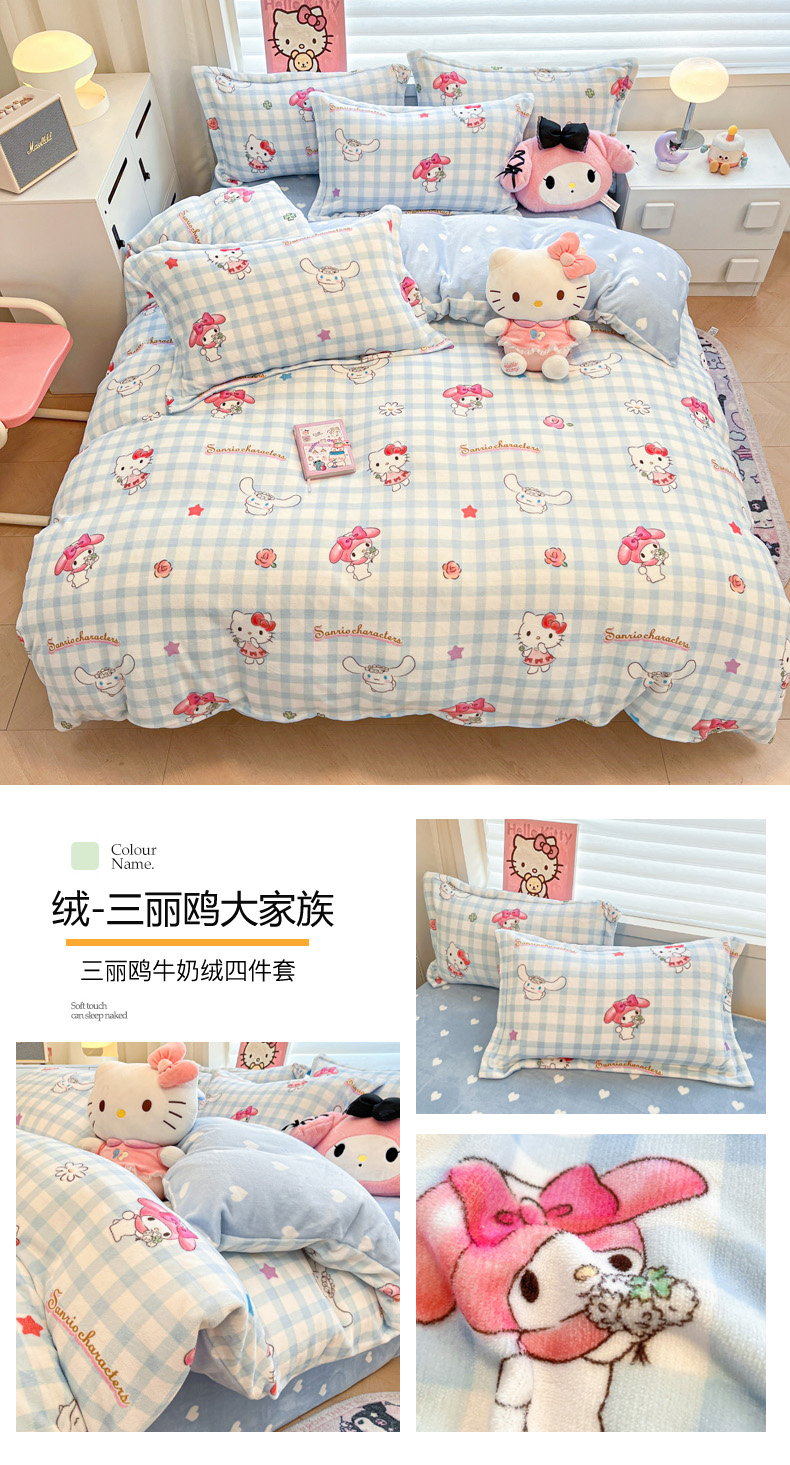 当前位置: 91家纺网 > 商品网购 > 床品套件 > 四件套 > 牛奶绒四件套 > 暮思家居 2025新款三丽鸥正版授权高克重200克加厚保暖卡通牛奶绒四件套 牛奶绒-KT和熊