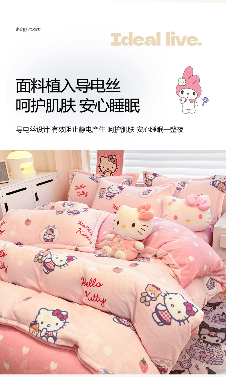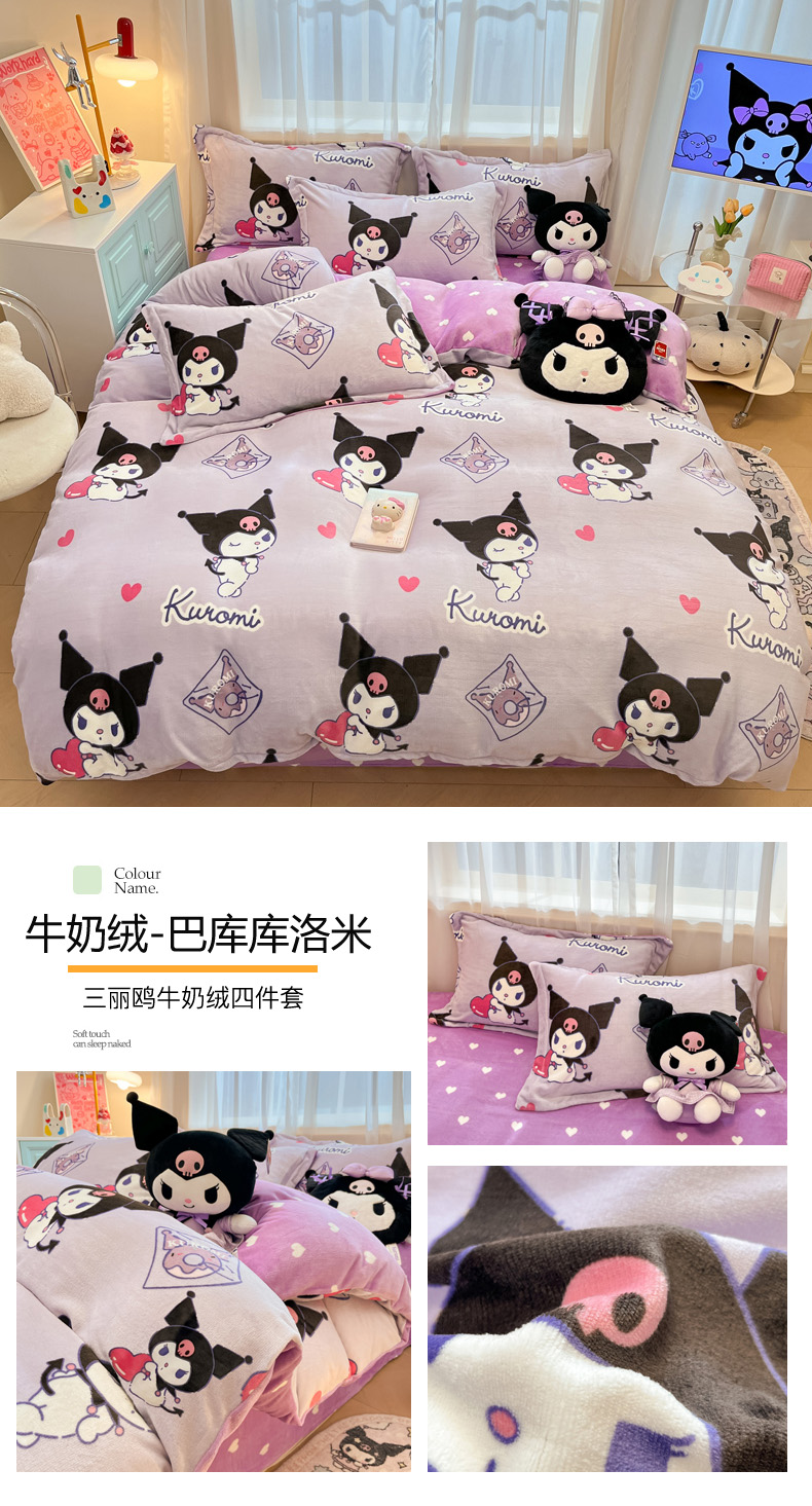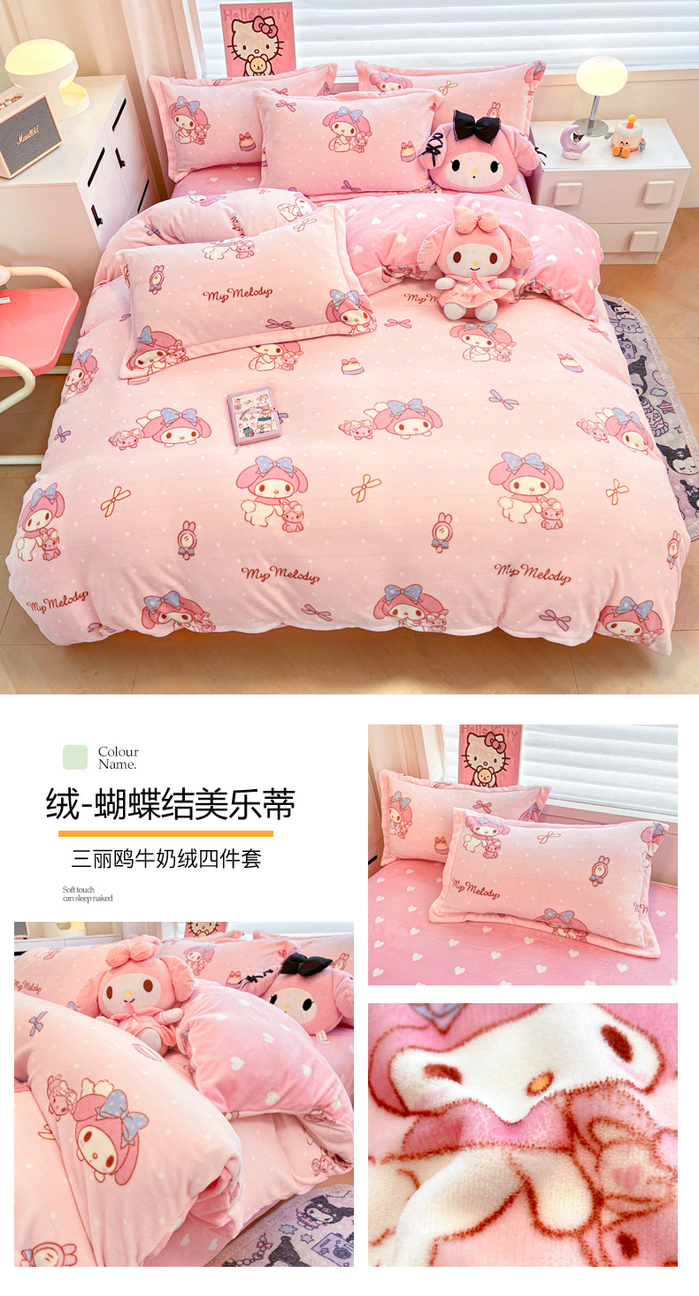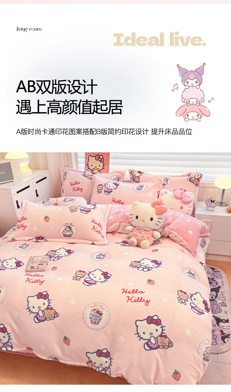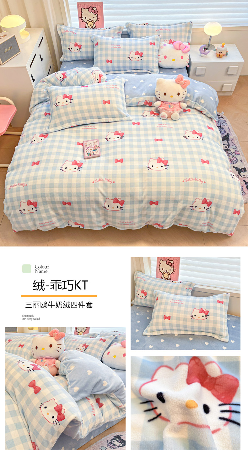 当前位置: 91家纺网 > 商品网购 > 床品套件 > 四件套 > 牛奶绒四件套 > 暮思家居 2025新款三丽鸥正版授权高克重200克加厚保暖卡通牛奶绒四件套 牛奶绒-KT和熊