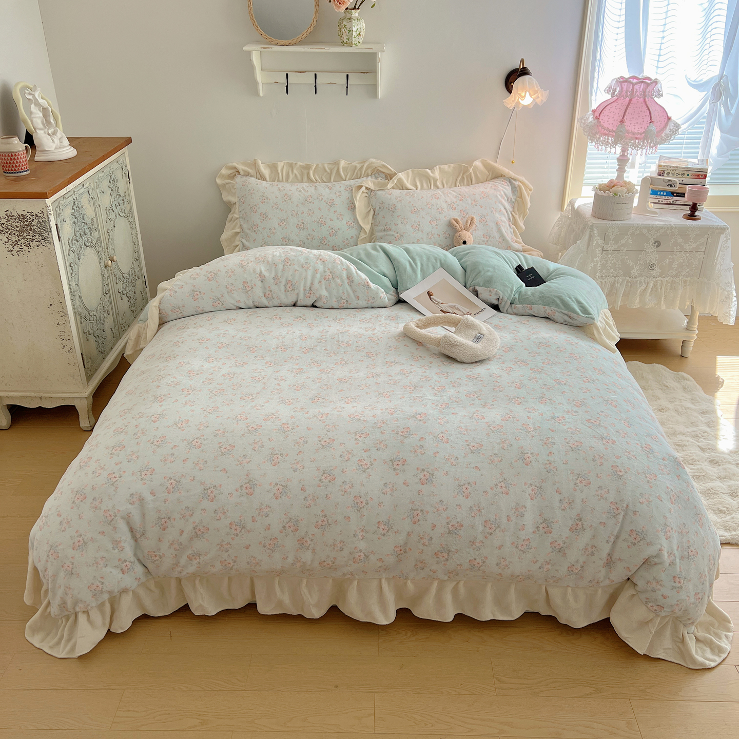 桃喜 2025新款牛奶绒碎花花边系列四件套【会员-5】 蔷薇