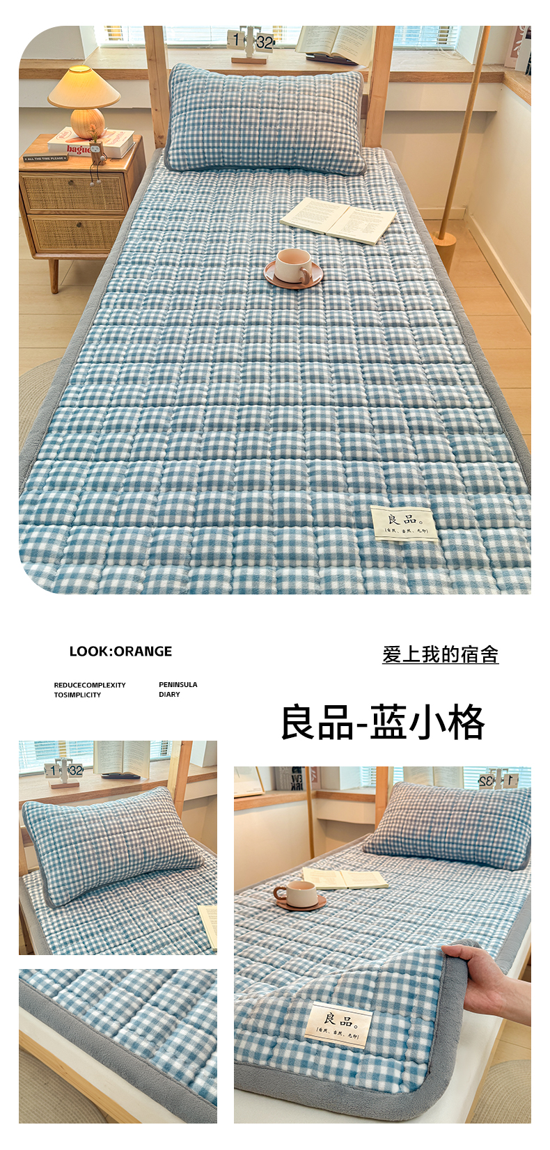 当前位置: 91家纺网 > 商品网购 > 床垫/床褥 > 珊瑚绒床垫 > 喜居 【加厚200g夹棉】2025新款无印风良品牛奶绒床垫床褥子 良品-蓝小格