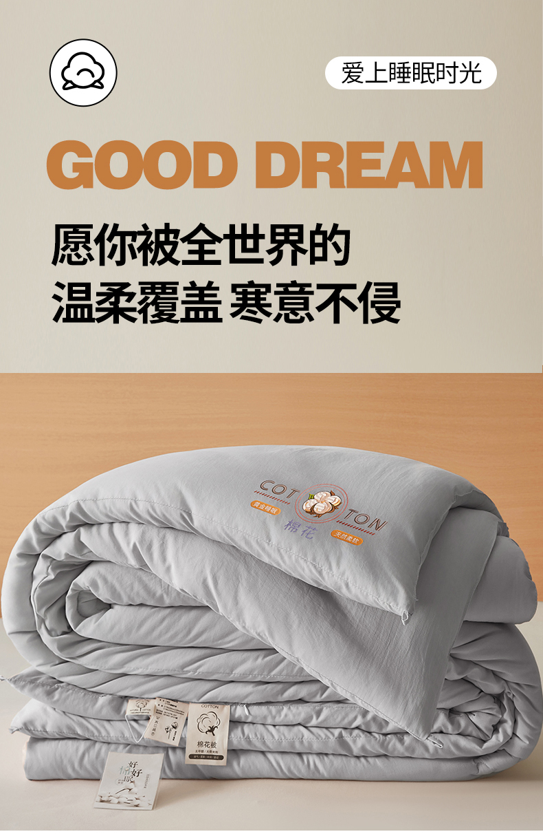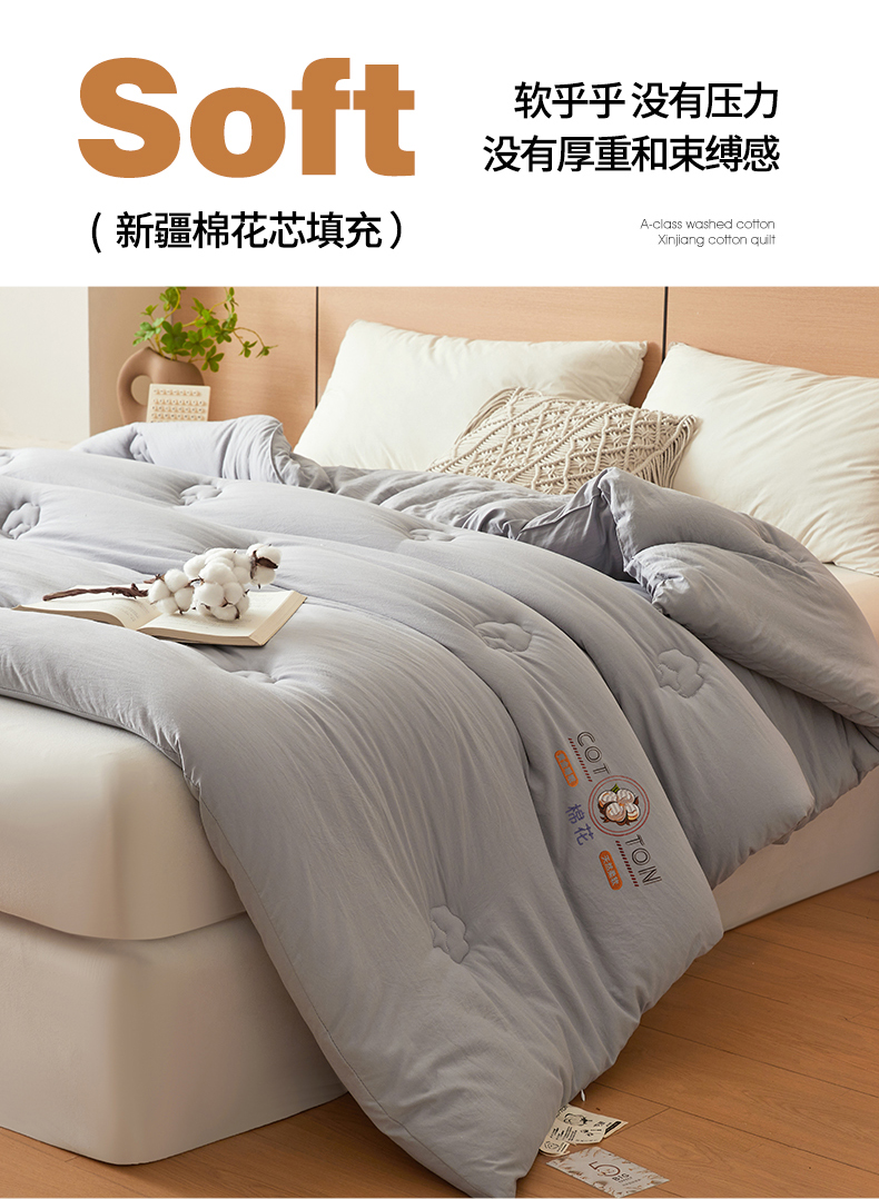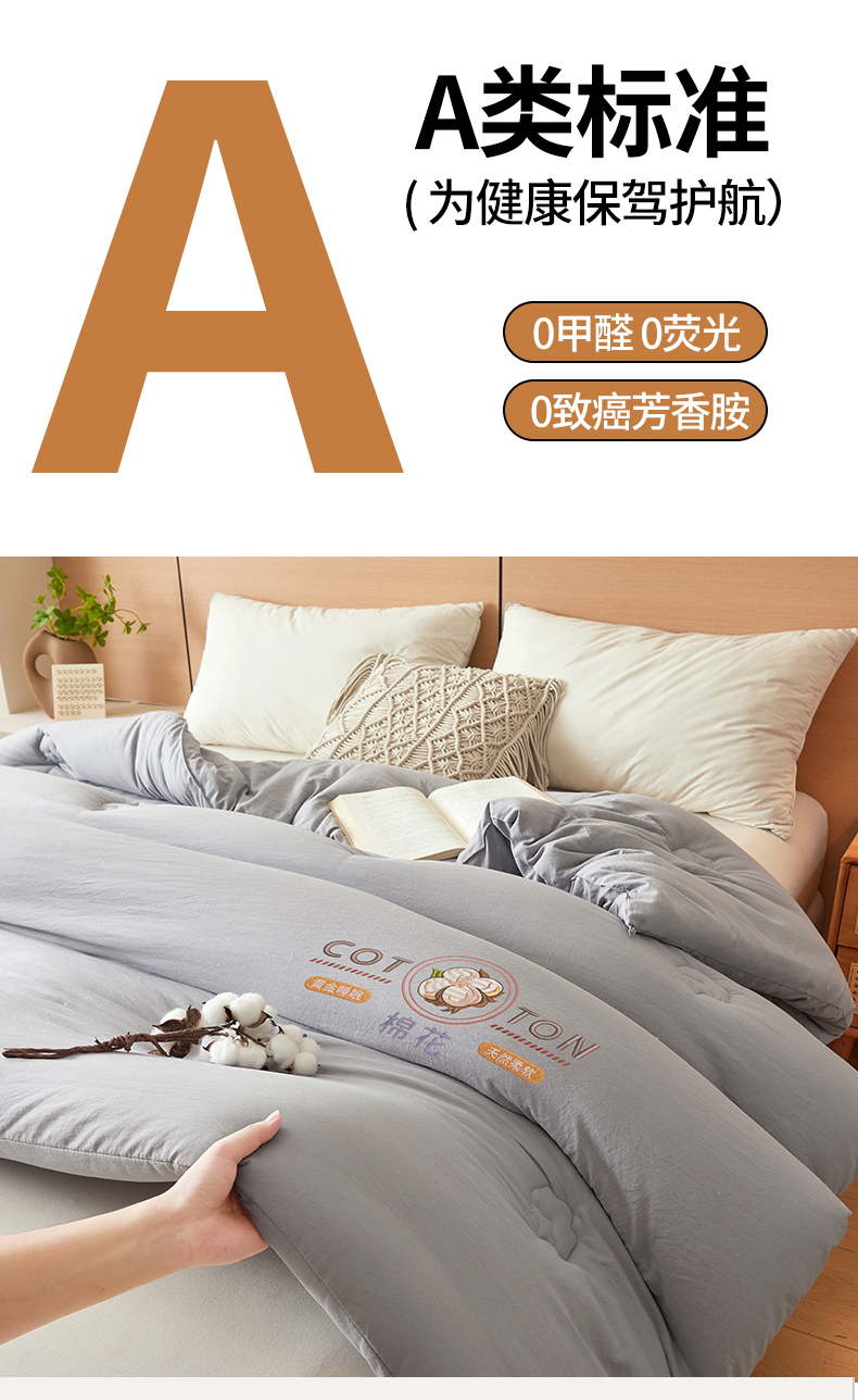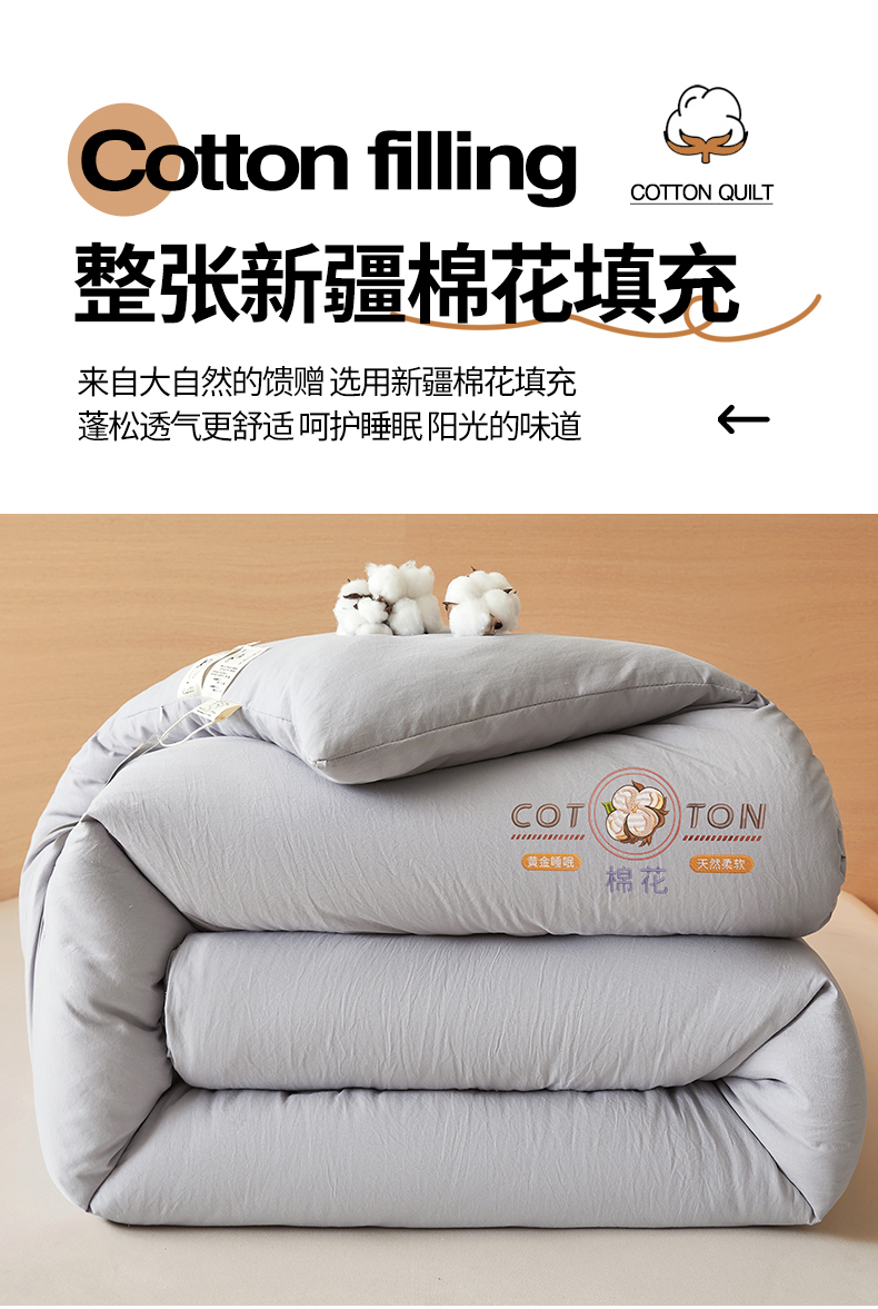 • 91家纺网 家纺一手货源 找家纺 (总)富艺隆 2025新款A类新疆棉花被水洗棉被子被芯加厚冬被春秋被学生宿舍被子(高克重面料,带检测口),棉花被-云朵白,棉花被-香妃玉,棉花被-星辰灰