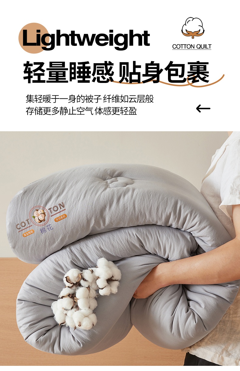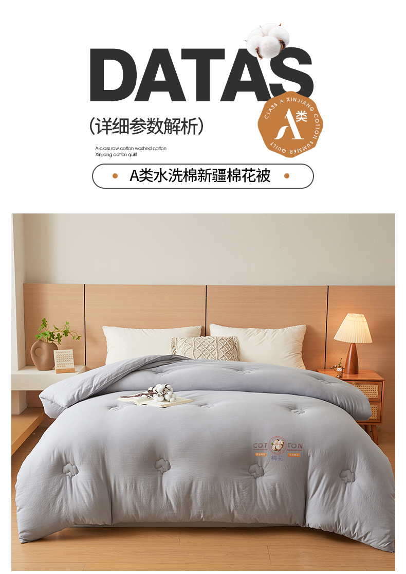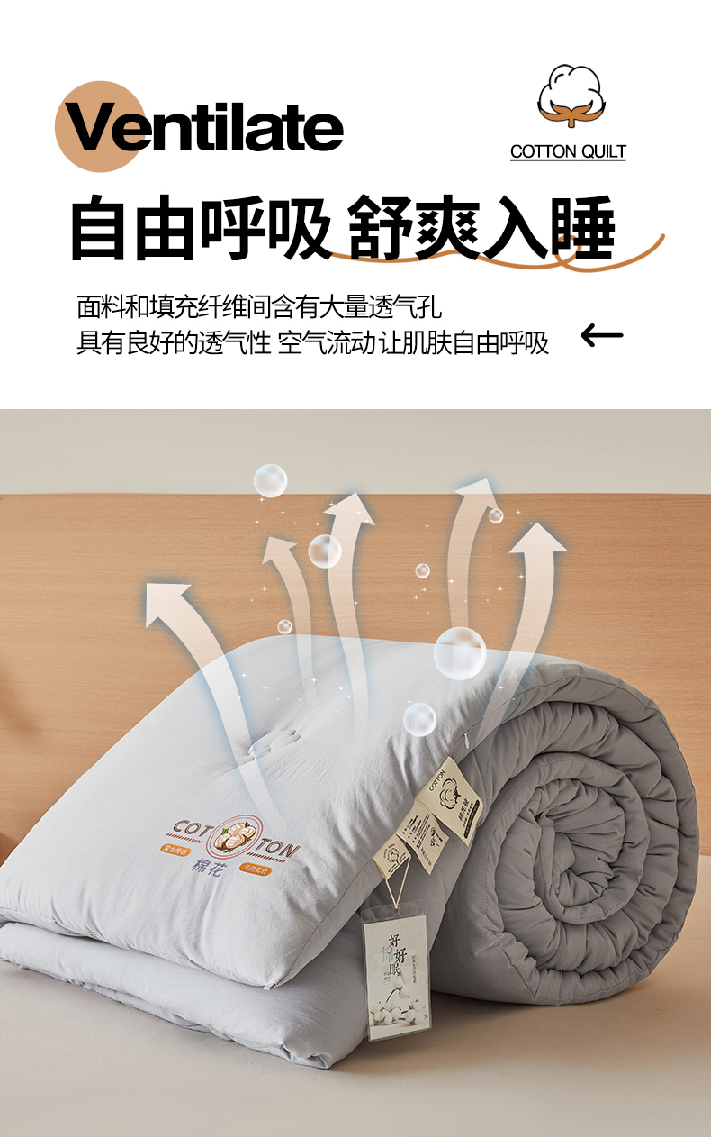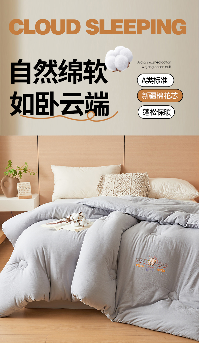 • 91家纺网 家纺一手货源 找家纺 (总)富艺隆 2025新款A类新疆棉花被水洗棉被子被芯加厚冬被春秋被学生宿舍被子(高克重面料,带检测口),棉花被-云朵白,棉花被-香妃玉,棉花被-星辰灰