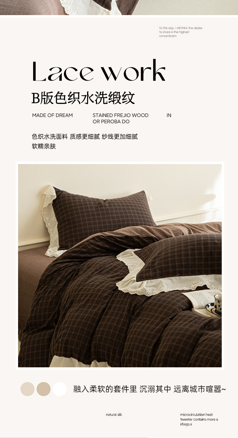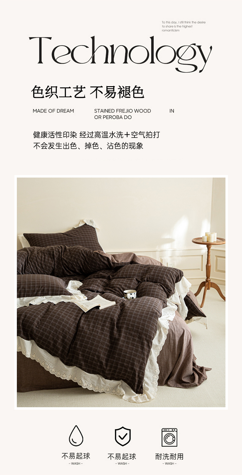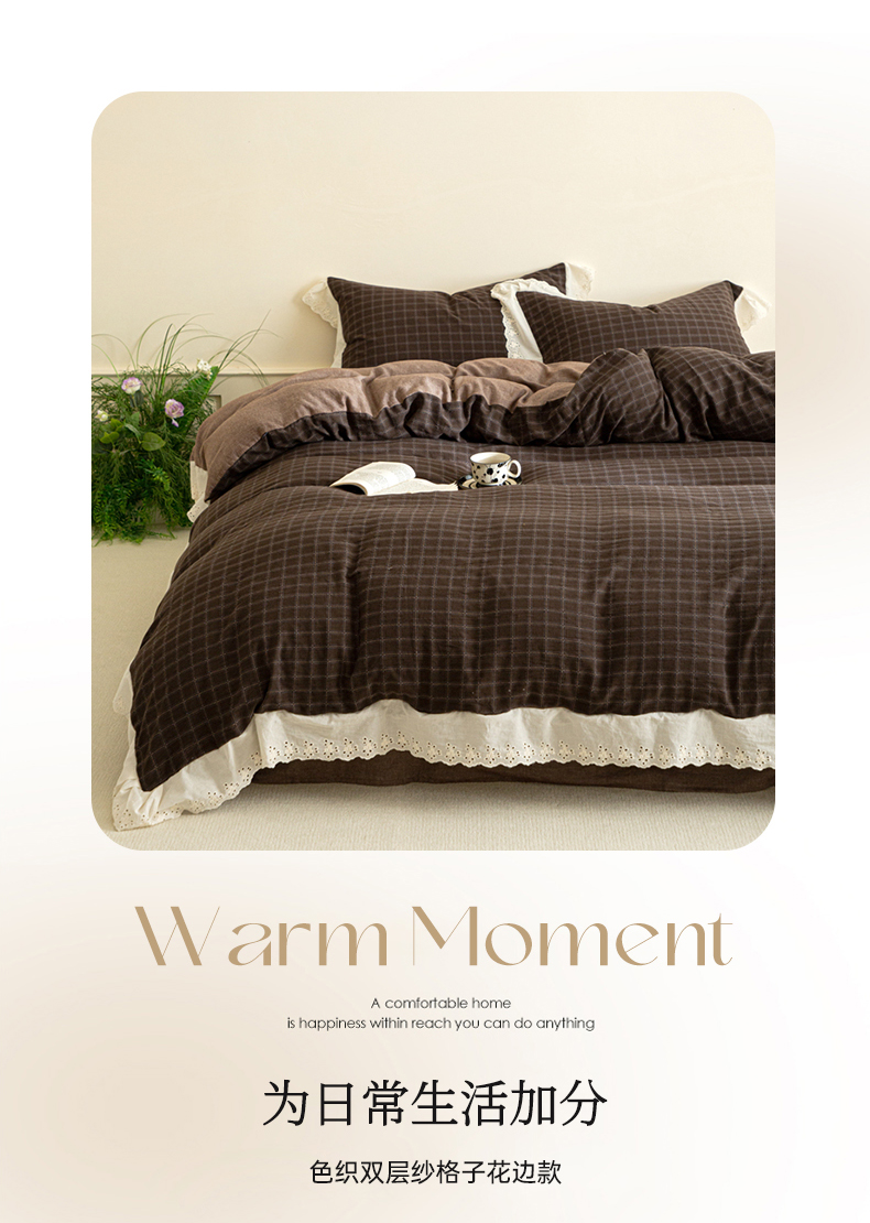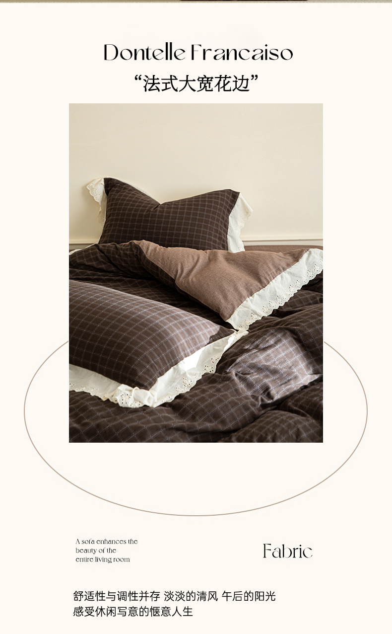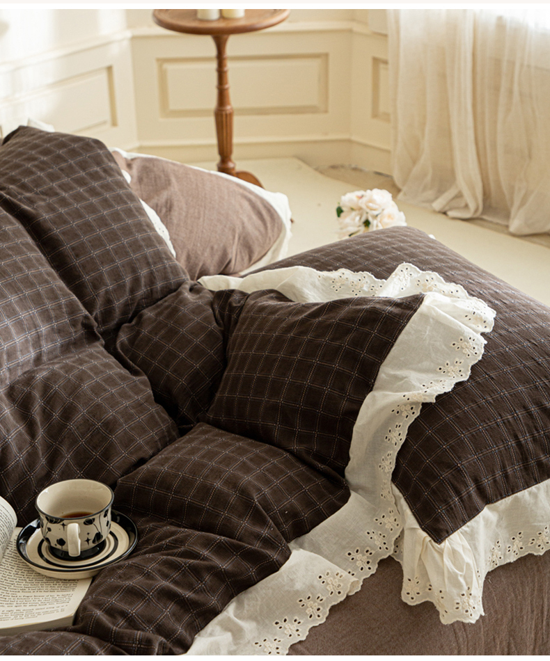 (总)棉眠 2025新款全棉色织双层纱格子法式大花边款