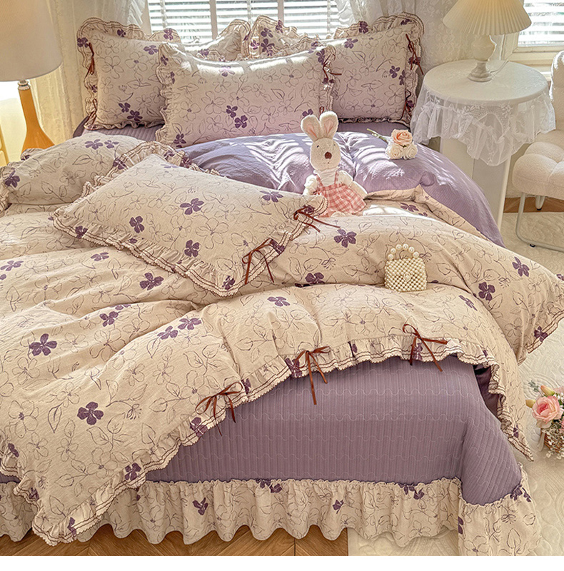 (总)韩约家纺 2025新款韩约1韩式蝴蝶结床盖款棉麻四件套