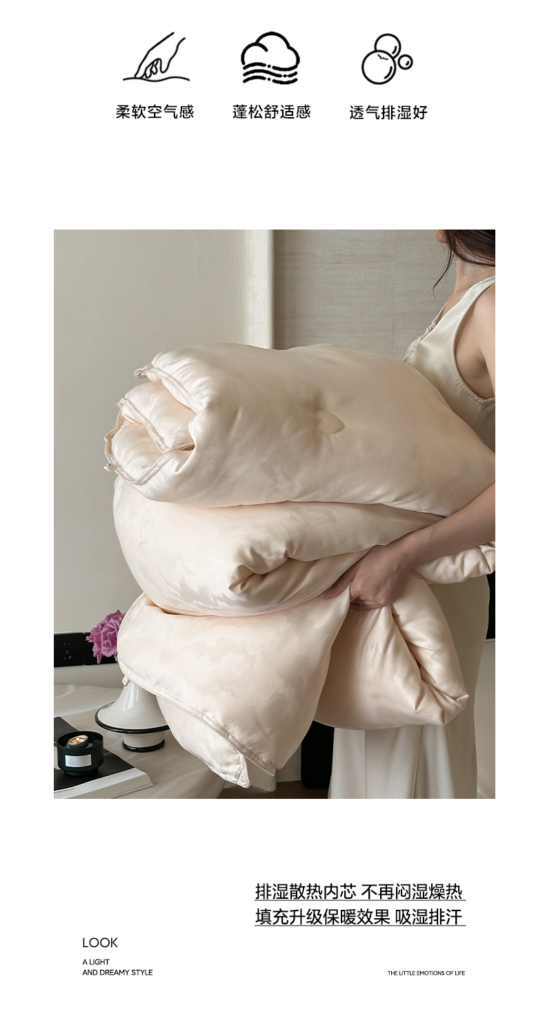 商品名称:一加一 2025新款御丝缎七彩银丝大提花航天恒温被子被芯 曲蕴-香槟玉