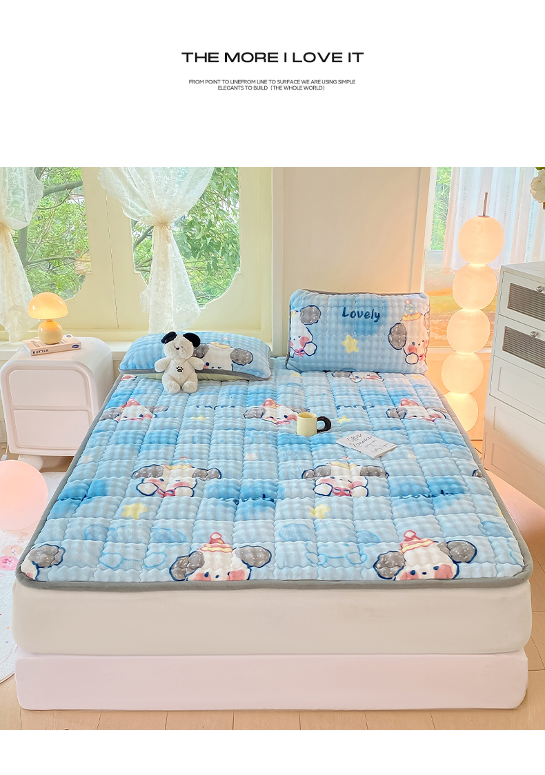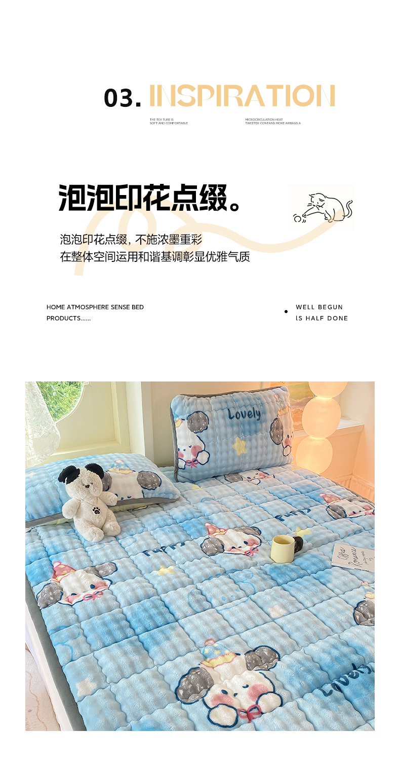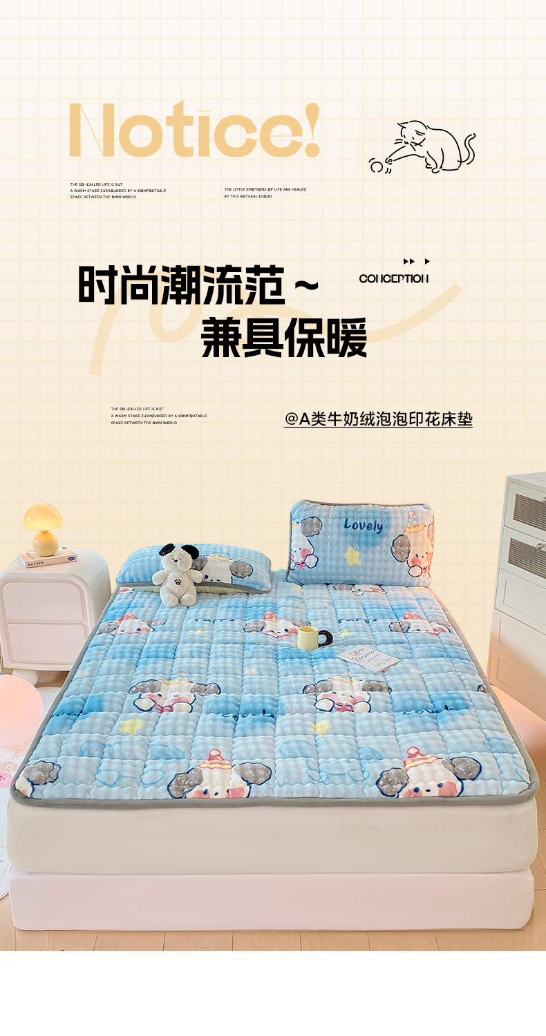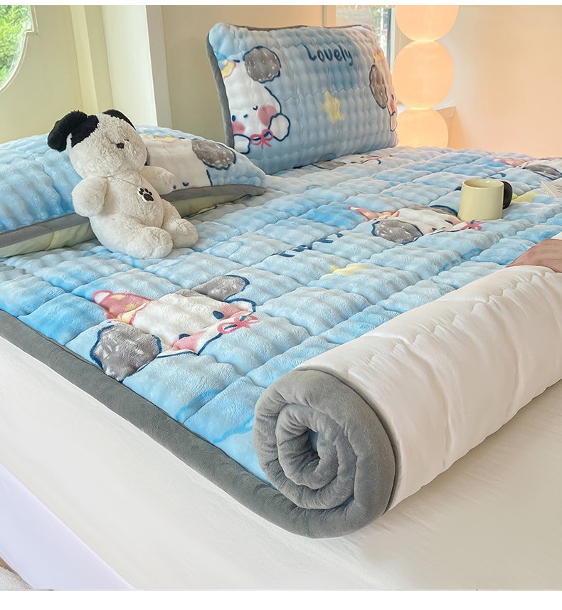 • 91家纺网 家纺一手货源 找家纺 眠势力 2025新款牛奶绒泡泡床垫加绒仿兔毛绒床褥子秋冬保暖珊瑚绒夹棉床护垫 趴趴狗