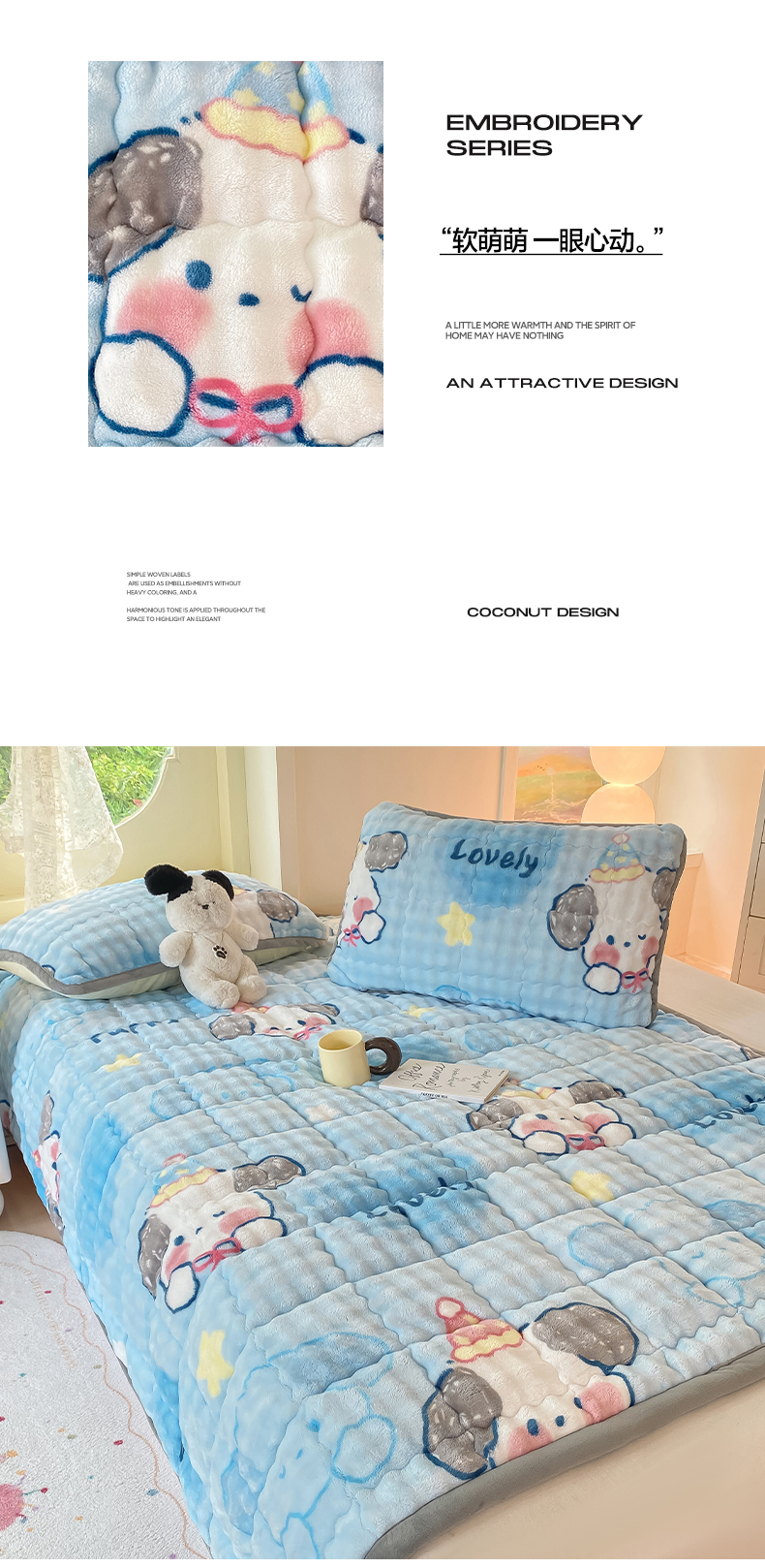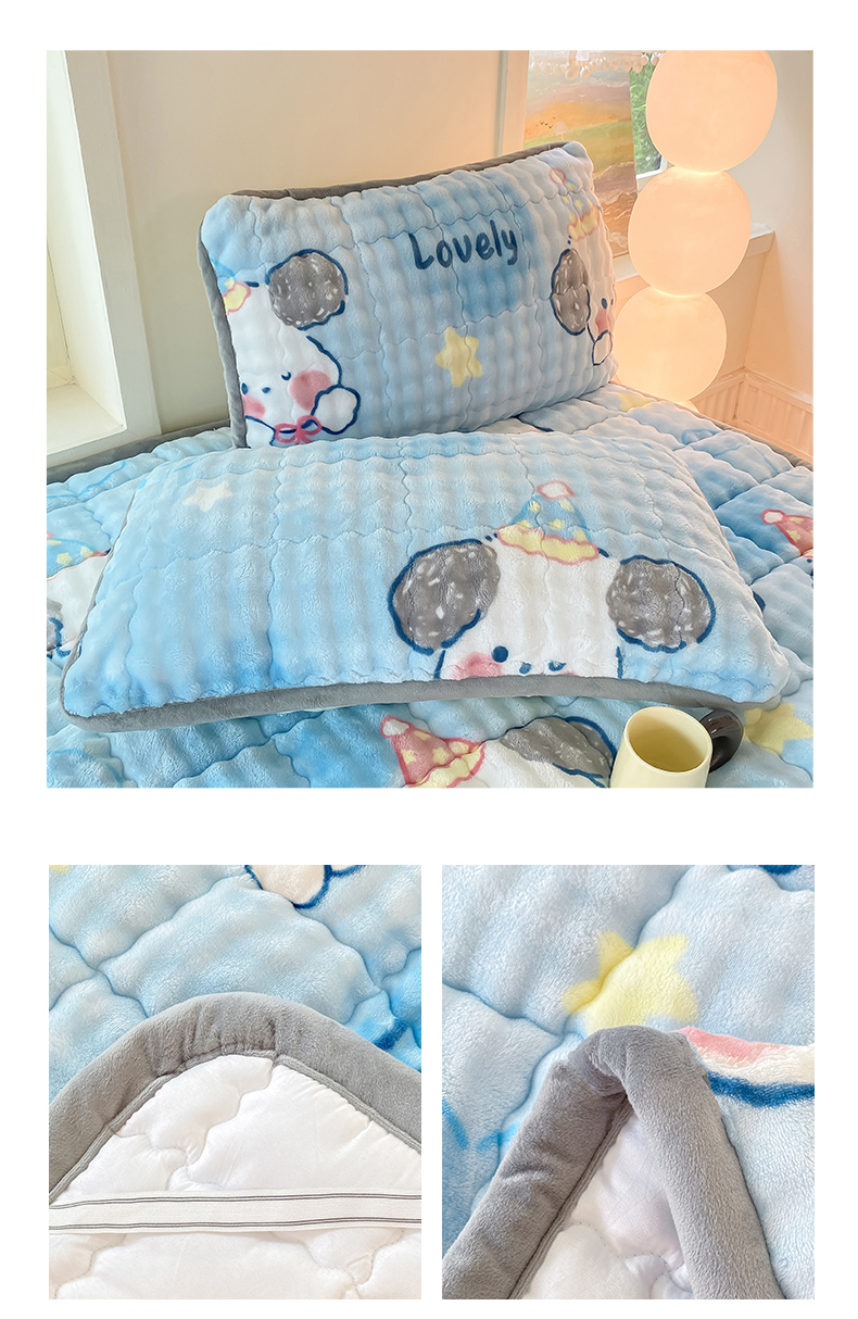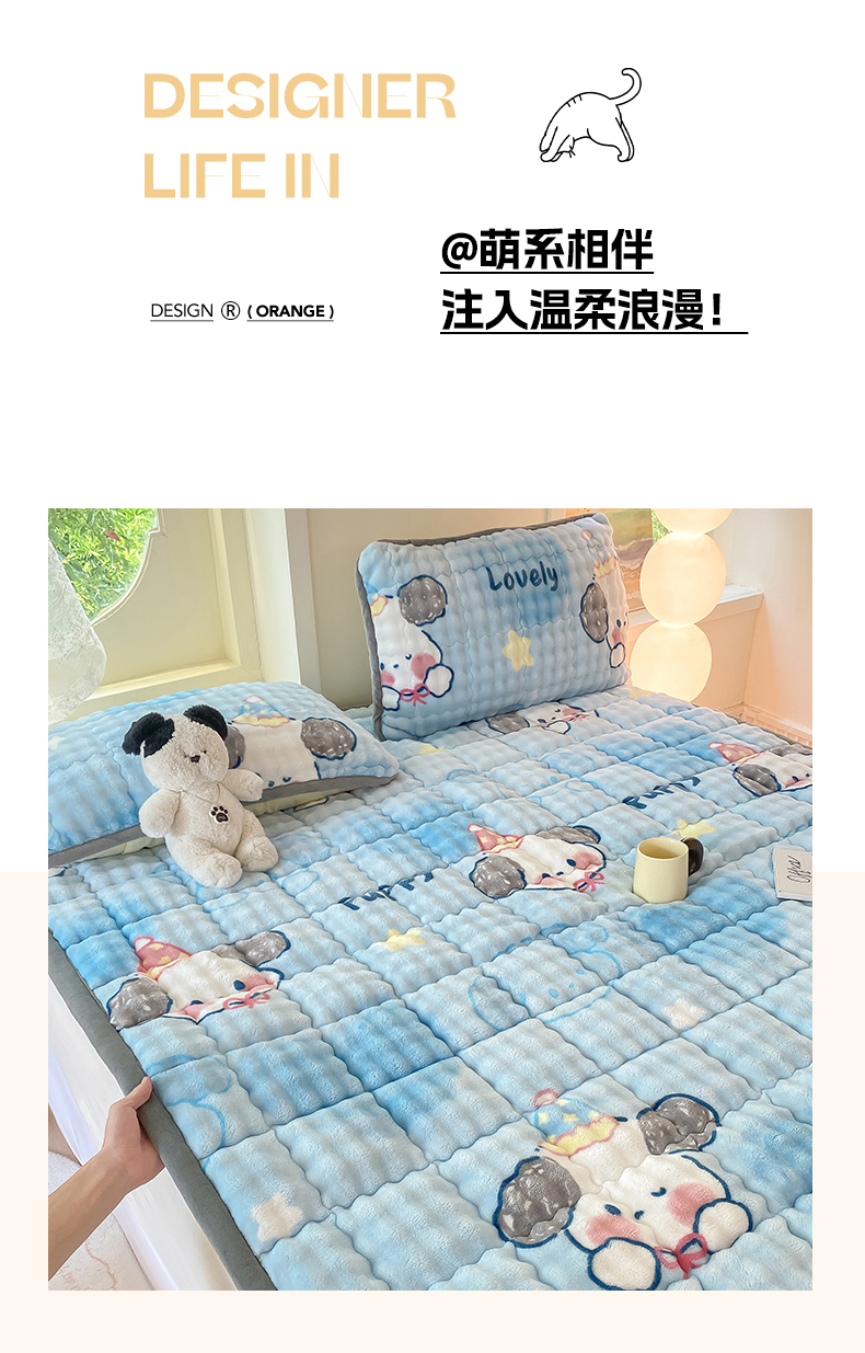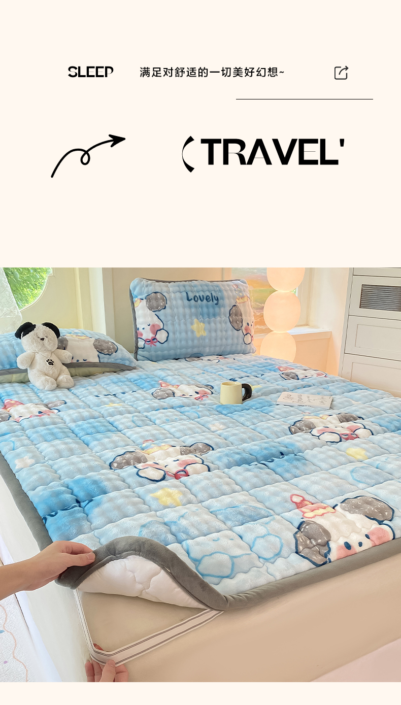 • 91家纺网 家纺一手货源 找家纺 眠势力 2025新款牛奶绒泡泡床垫加绒仿兔毛绒床褥子秋冬保暖珊瑚绒夹棉床护垫 趴趴狗