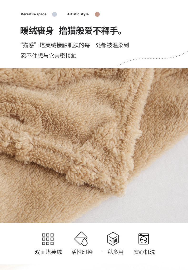 栩裕纺织 2024新款蝴蝶提花卷边款多功能毛毯 米杏色-卷边款