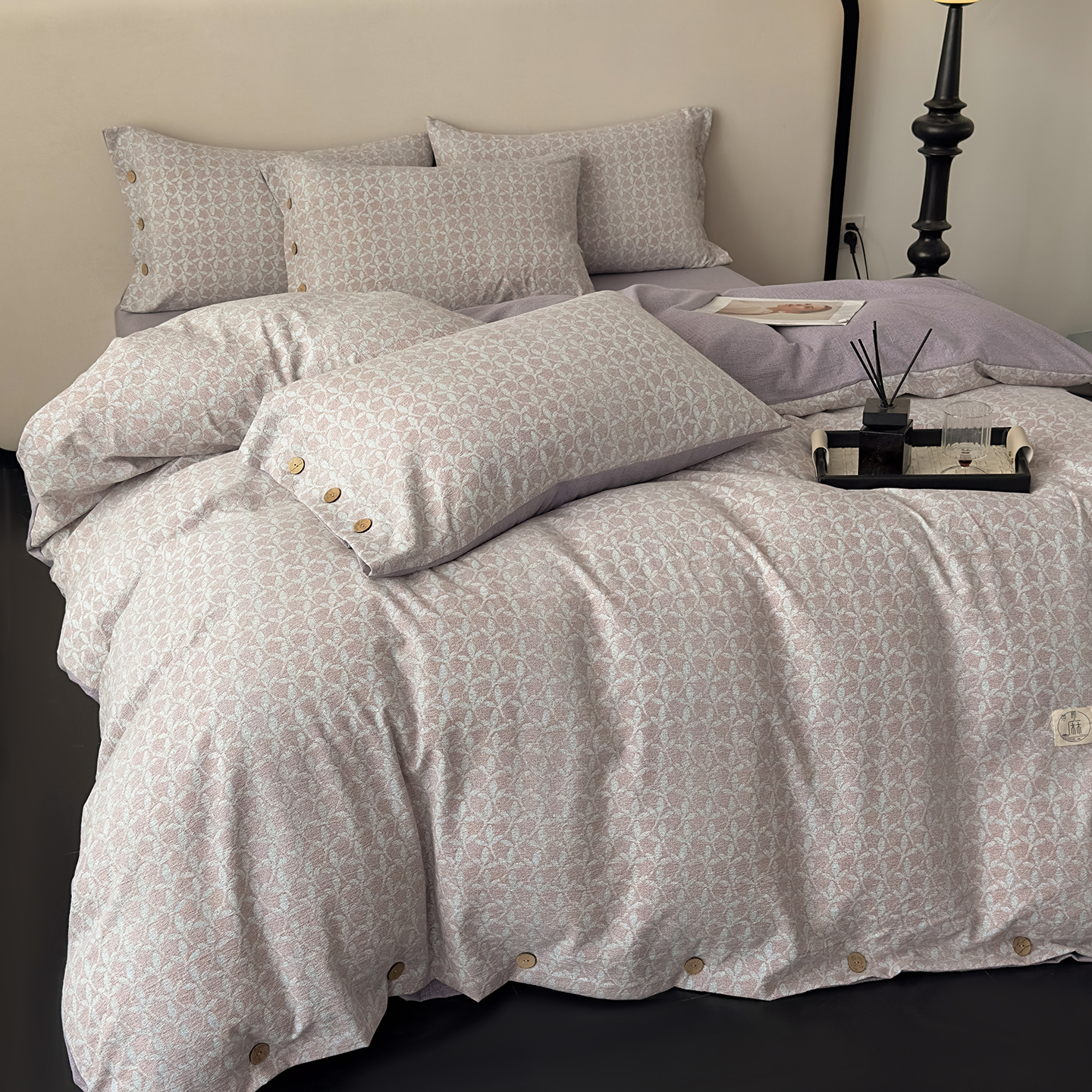 禧多家纺 2025新款提花原柔麻四件套纽扣款 织月