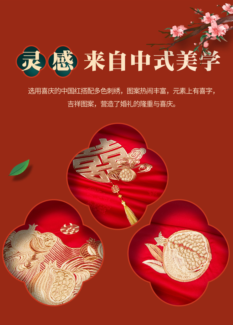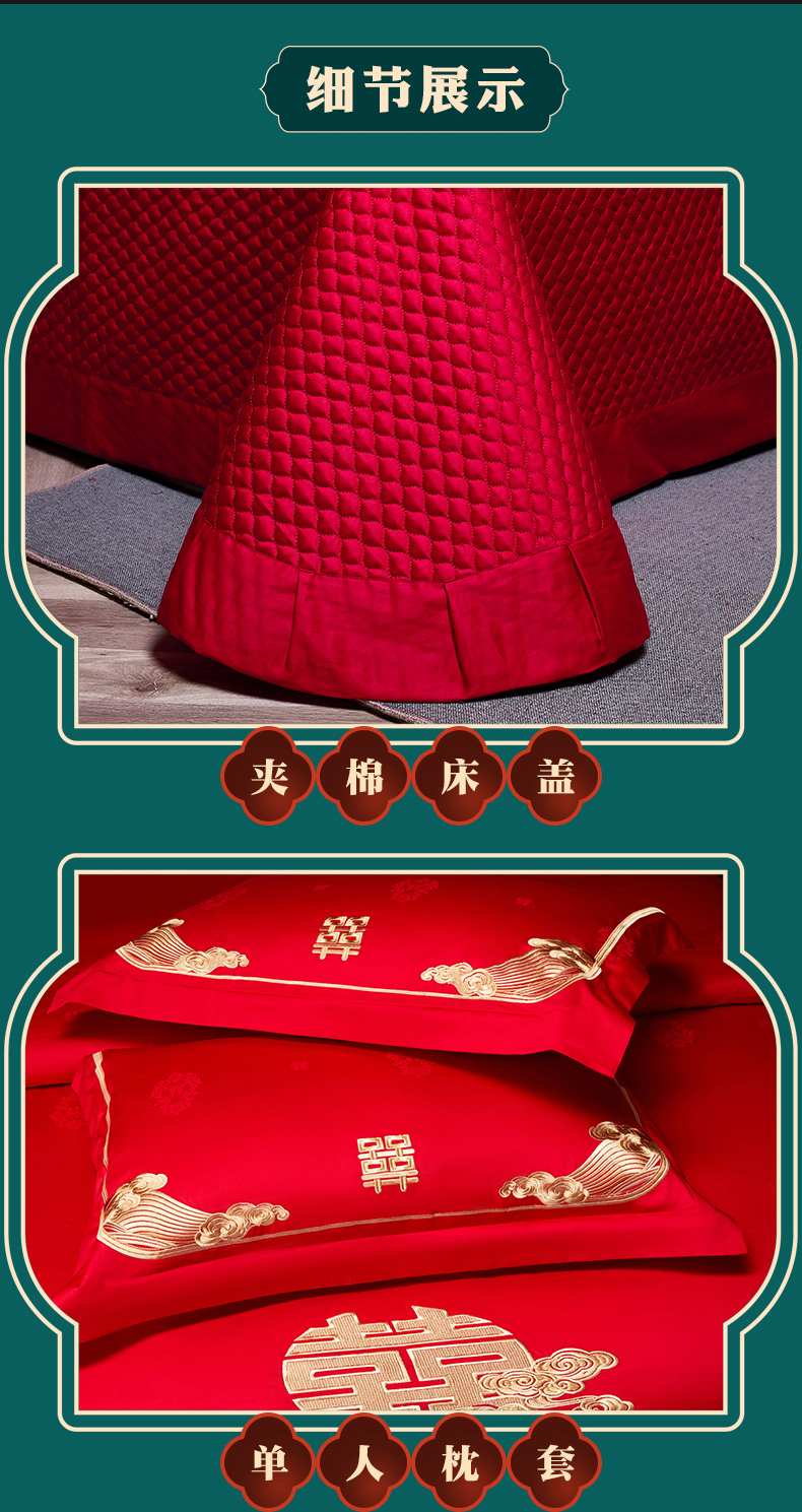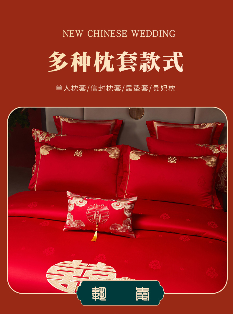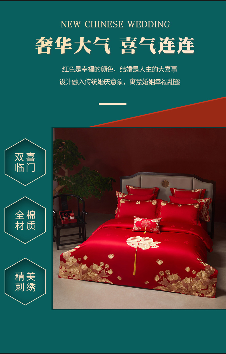 当前位置: 91家纺网 > 商品网购 > 床品套件 > 四件套 > 婚庆四件套 > 宏羽纺家纺 2025新款高支高密全棉提花新中式婚庆多件套 高支高密榴连忘返-金