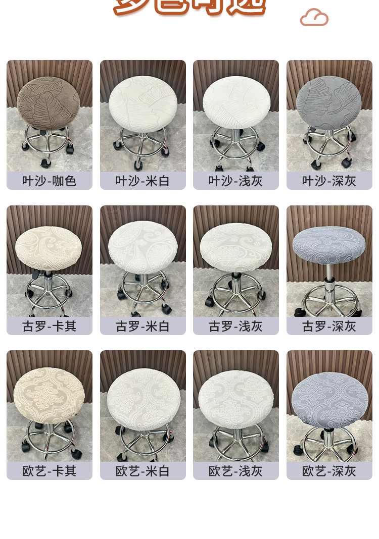 (总)逐日沙发套 2025新款提花绒针织款圆凳套-叶沙,叶沙-咖色,叶沙-米白,叶沙-浅灰,叶沙-深灰