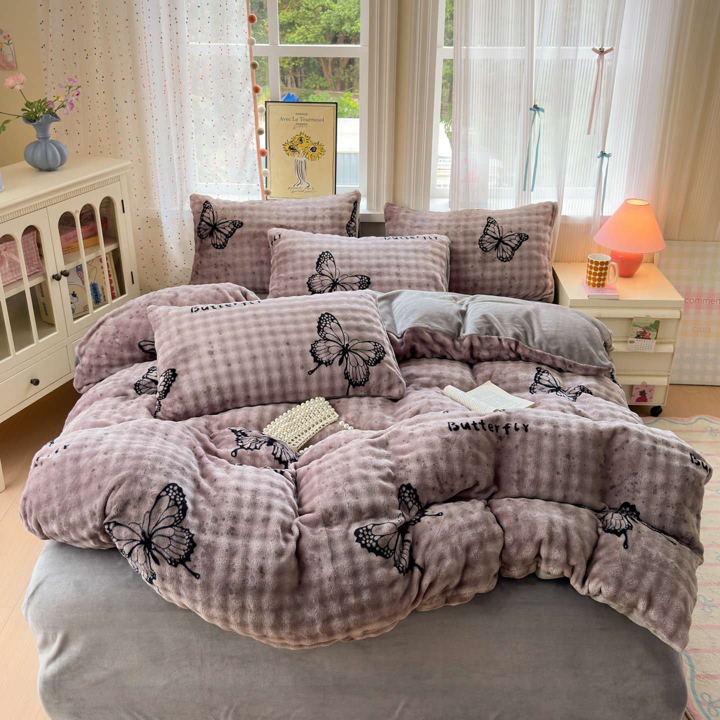 (总)德比尔斯 2025新款暗合印花牛奶绒四件套,爱心-紫,波点-紫,布朗尼,豆蔻-紫,粉格樱桃,蝴蝶结-灰,蝴蝶结-紫,七彩格,紫香草