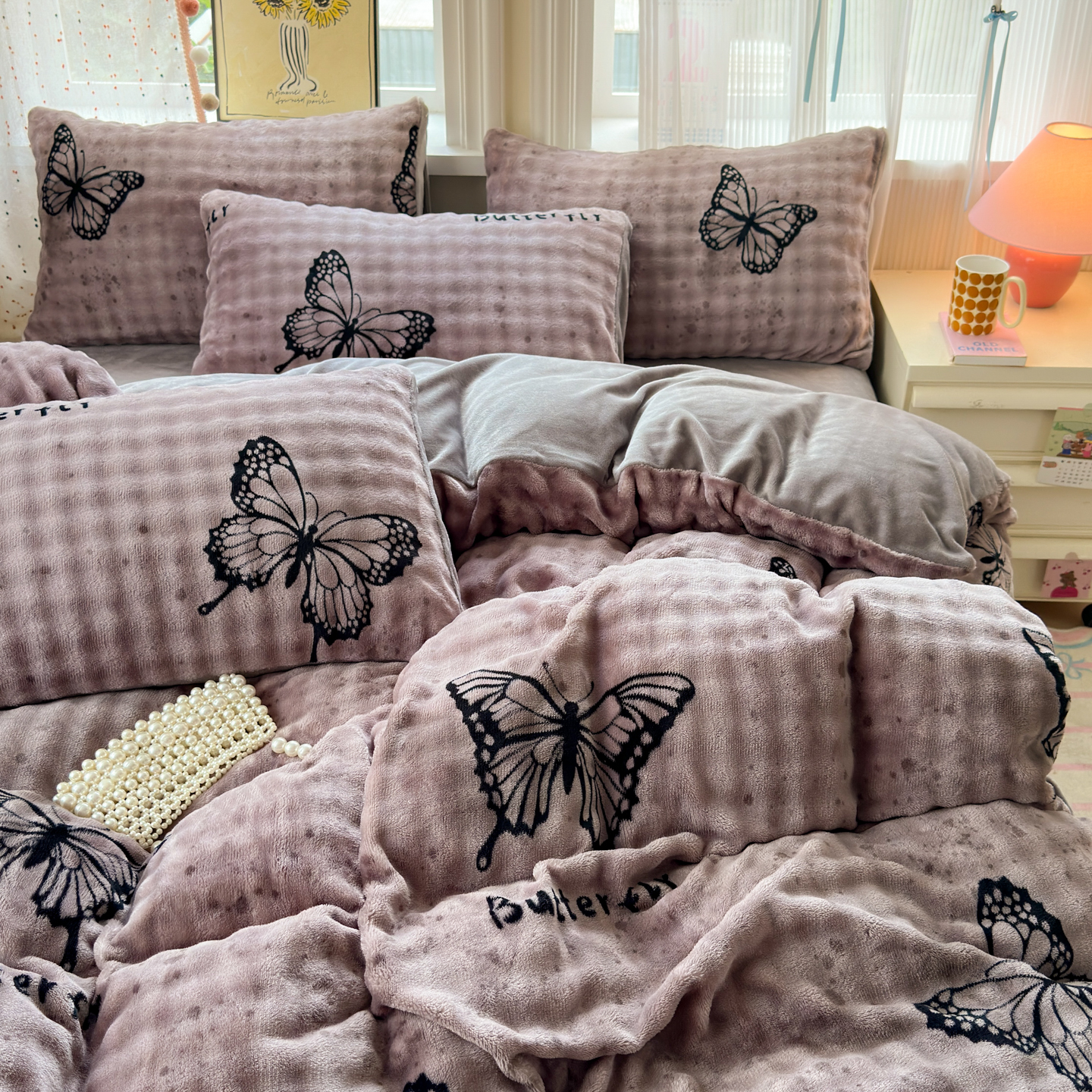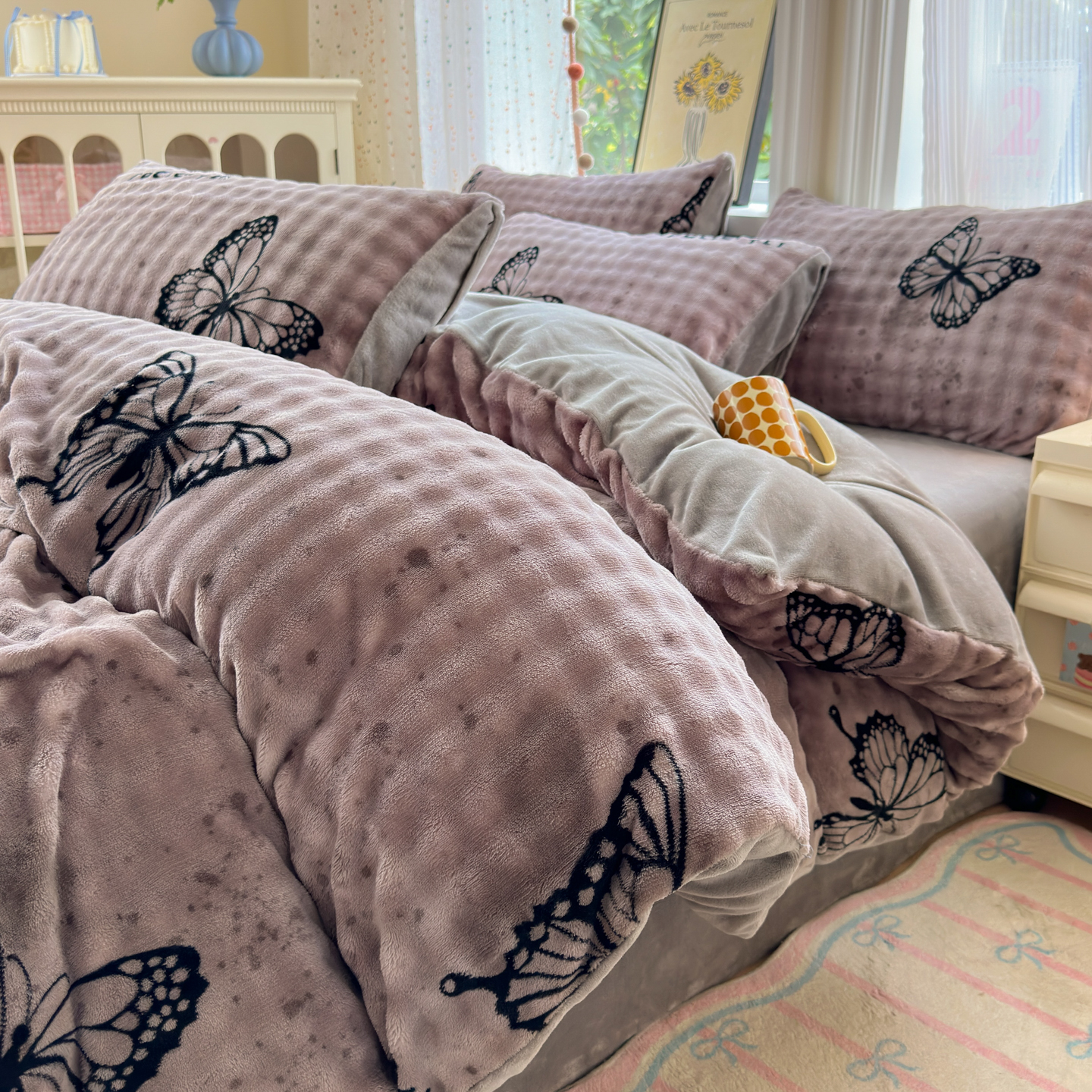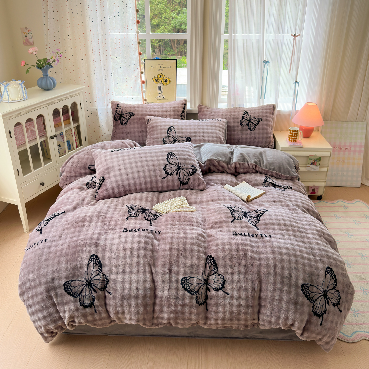 (总)德比尔斯 2025新款韩版白边黑边赫本风牛奶绒床盖四件套,爱心小熊,安妮粉,蝶恋花粉,法风小香,赫本-蝴蝶结粉,赫本-蝴蝶结咖,盛夏丛林,晕染花曳
