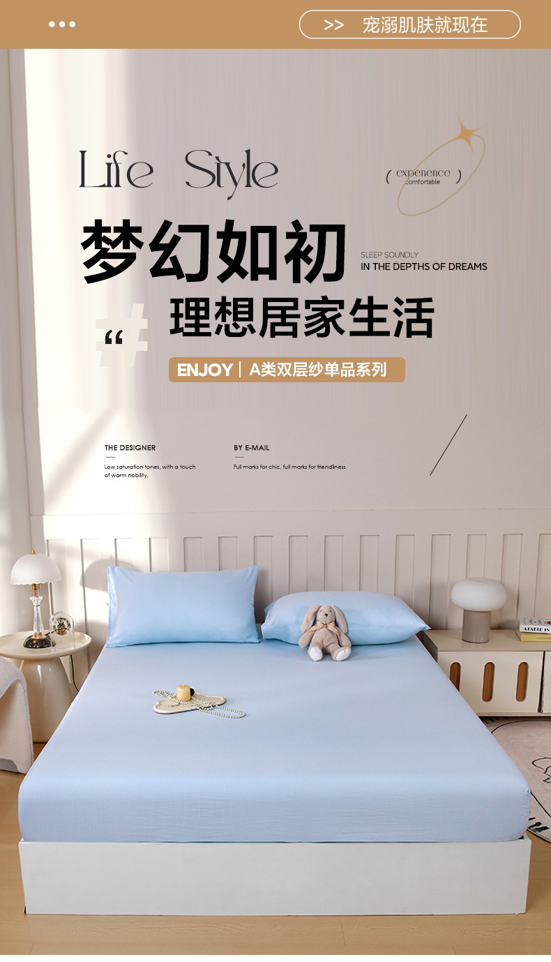 • 91家纺网 家纺一手货源 找家纺 (总)一诺家居 2025新款A类云感双层纱纯色床笠针织棉母婴级裸睡床笠三件套 量大可优惠,叠拍图床笠款,豆蔻绿,暮云灰,奶昔白,天空蓝,香妃玉,熏衣紫,优雅粉,月光蓝,珍珠白