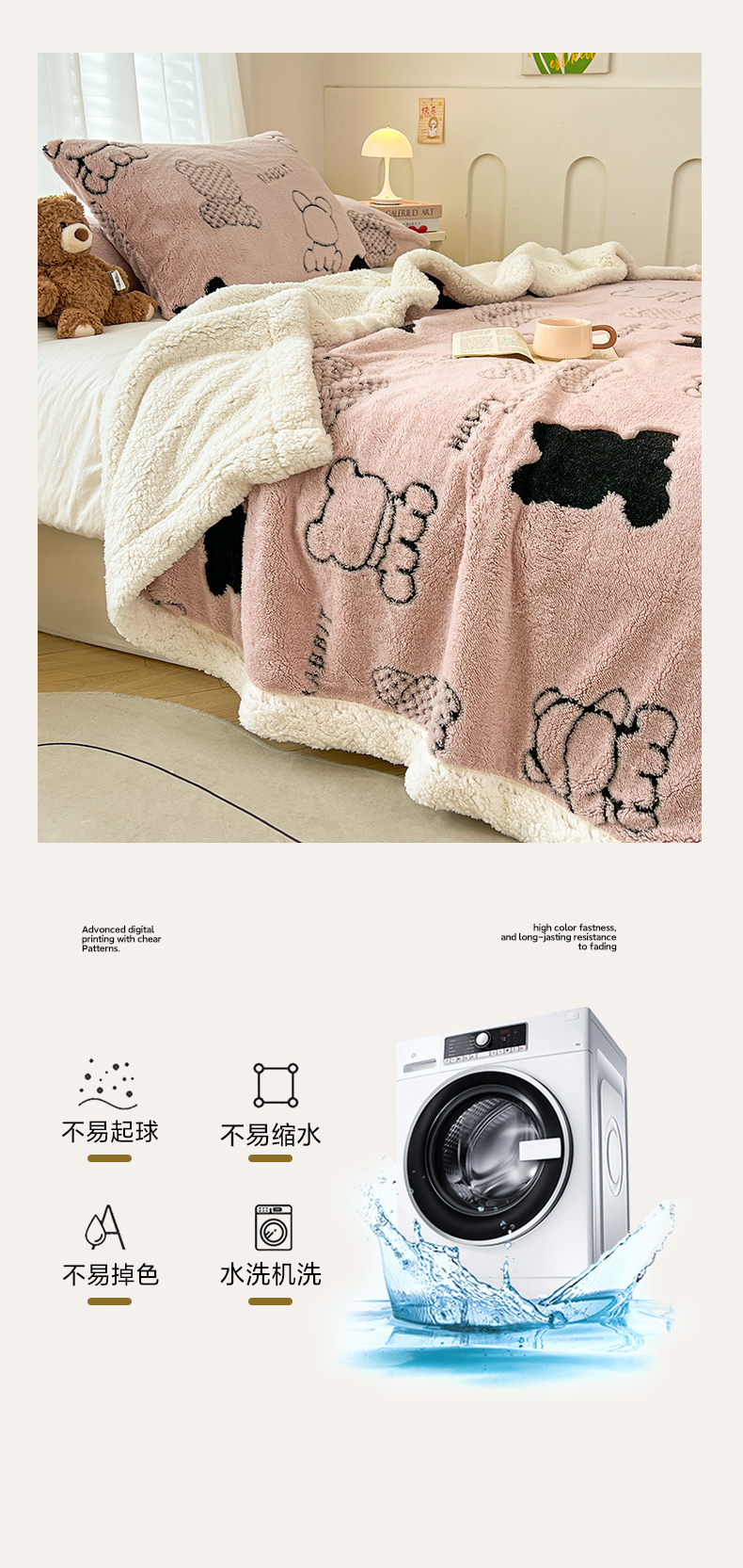 商品名称:欧邦 2025新款A类舒棉绒毛毯盖毯毯子-可可熊 可可熊-浅粉