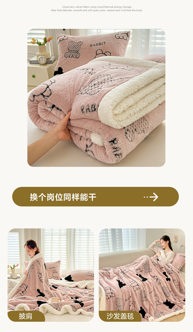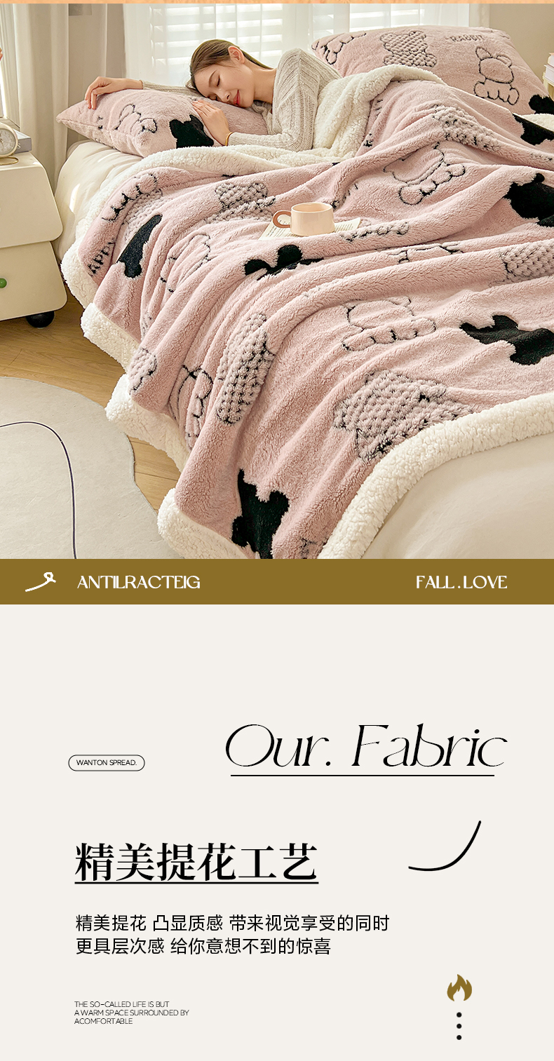 (总)欧邦 2025新款提花暖阳绒羊羔绒毛毯多功能盖毯-梦境系列,梦境-粉玉,梦境-幻白,梦境-米驼,梦境-桑绿,梦境-雾灰